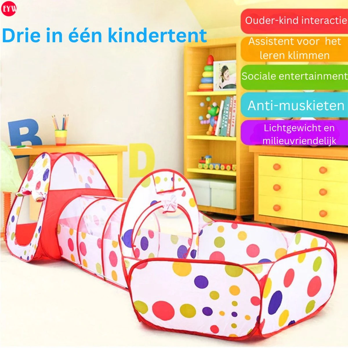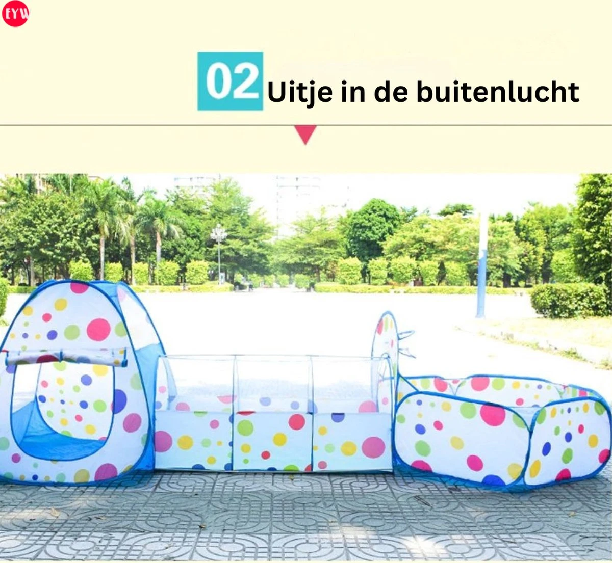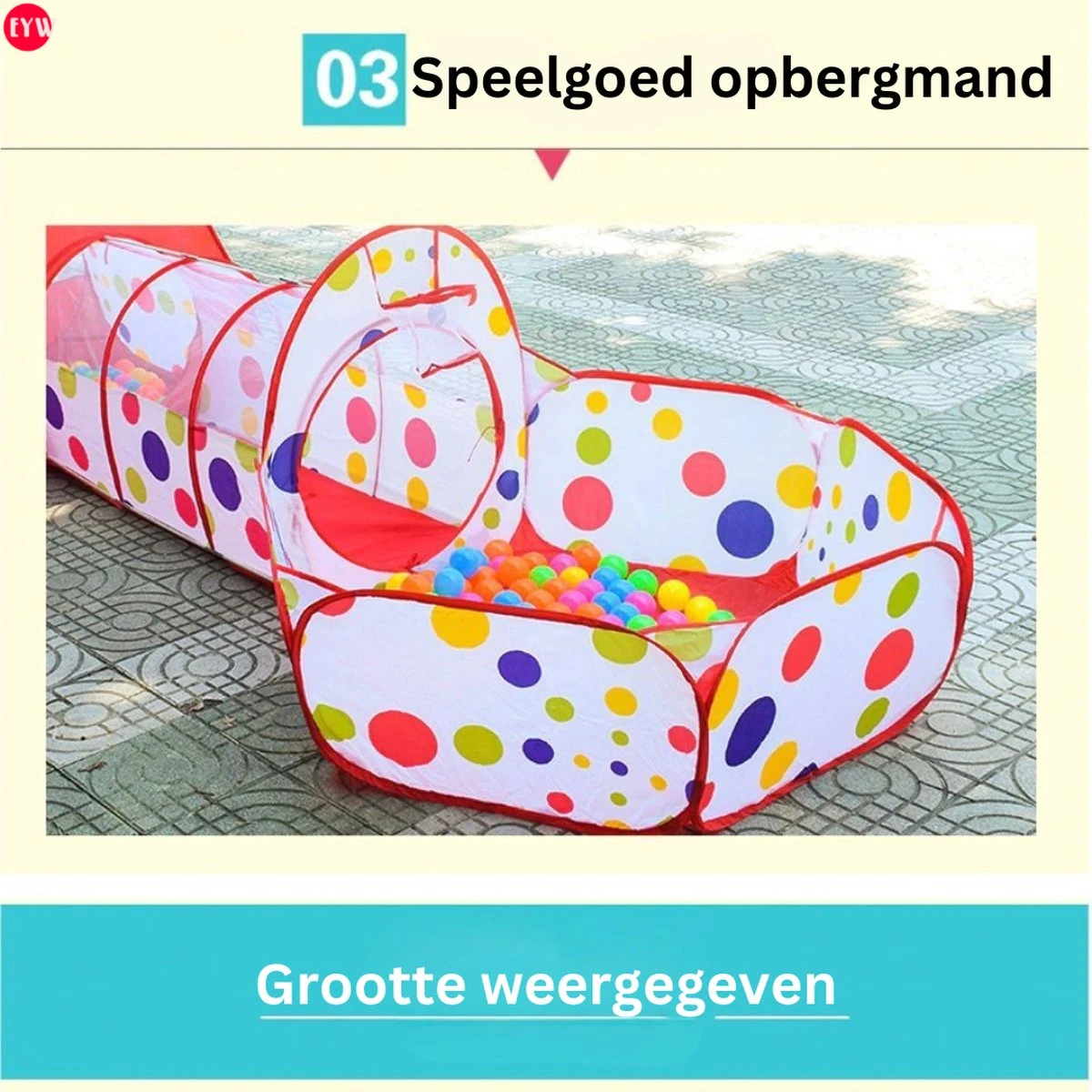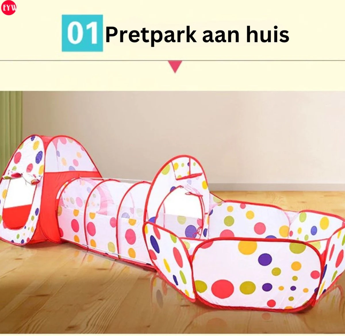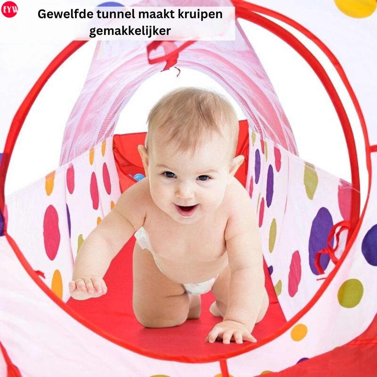 Het kruipen door deze tunnel is niet alleen erg leuk, het is ook goed voor de ontwikkeling van de motorische vaardigheden van jouw kindje. Het 3-in-1 ontwerp van dit peuterspeelhuis zal je kind urenlang bezig houden! Met de speeltent, kruiptunnel en ballenbak met basketbalring is deze set een musthave voor actieve en nieuwsgierige kinderen!