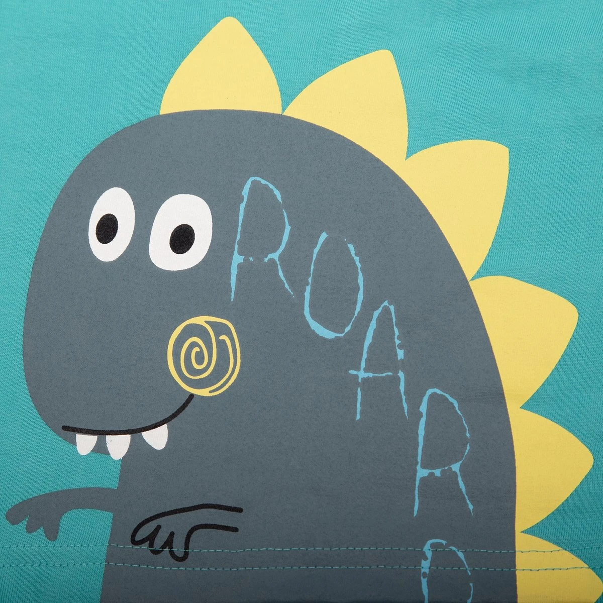Deze leuke baby pyjama met dinosaurus print, bestaande uit een T-shirt met lange mouwen en een lange broek met een elastische tailleband garandeert blije nachten in 100% zacht katoen.