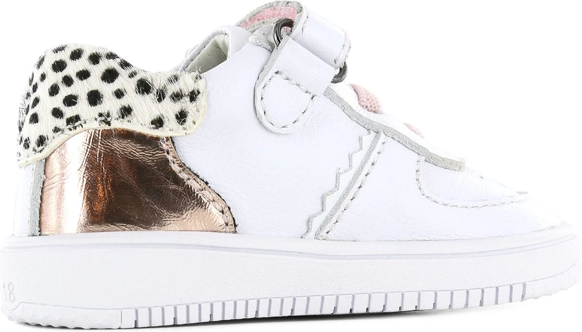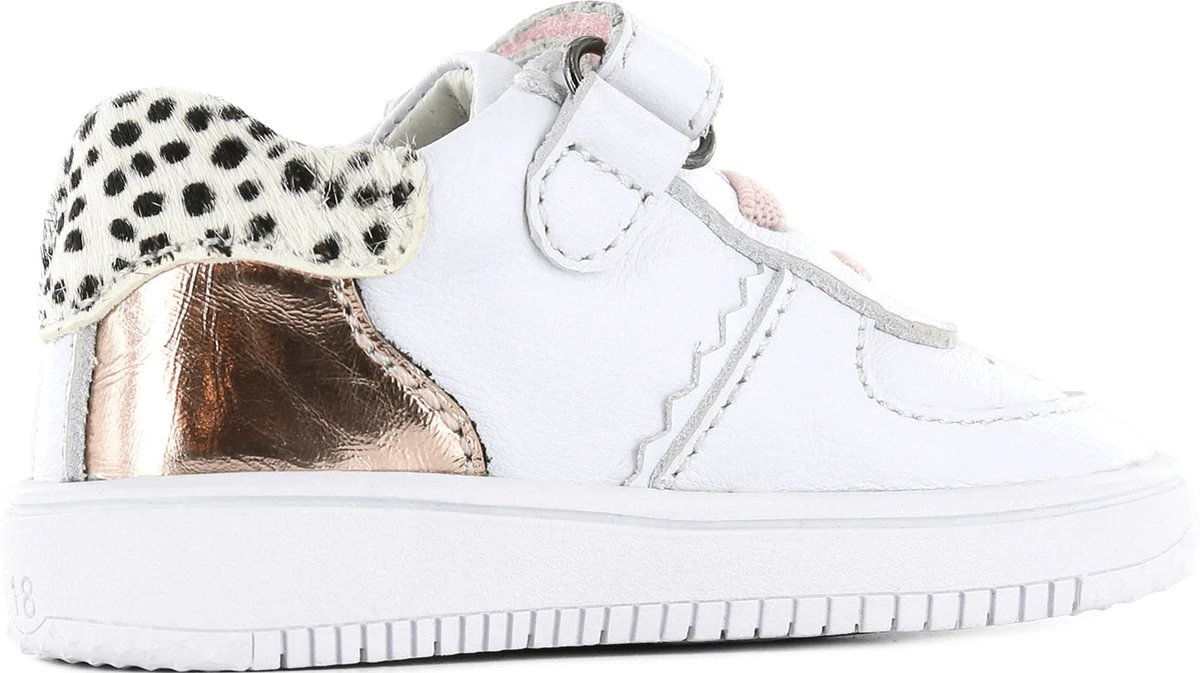 Shoesme komt deze zomer met een nieuw stoer model op de markt, perfect voor de kleintjes die net hun eerste stapjes zetten. Ook bij deze nieuwe babysneakers is er goed gekeken naar de pasvorm van de net stappende kids; waardoor de vorm van de sneakers goed aansluit op de voetjes en er onderscheid gemaakt wordt tussen links en rechts. De babysneakers zijn 100% leer gevoerd en hebben flexibele, door Shoesme ontwikkelde, rubberen loopzolen die met de voetjes mee buigen. De verstevigde hiel en het uitneembare voetbed bieden steun en kwaliteit, waardoor jouw kleintje zowel staand als stappend een goede houding heeft. Door al deze eigenschappen hoeft je kleintje helemaal niet te wennen aan het dragen van deze sneakers, staan ze veel stabieler en stappen ze zo weg op deze eerste sneakers. Dit model is volledig uitgevoerd in het wit, met rosé gouden en ponyhair hiel. Hierdoor perfect matchend met iedere outfit van je kleintje. De sneakers hebben een vetersluiting, zodat het goed passend te maken is voor ieder voetje. Kortom: een echte musthave!