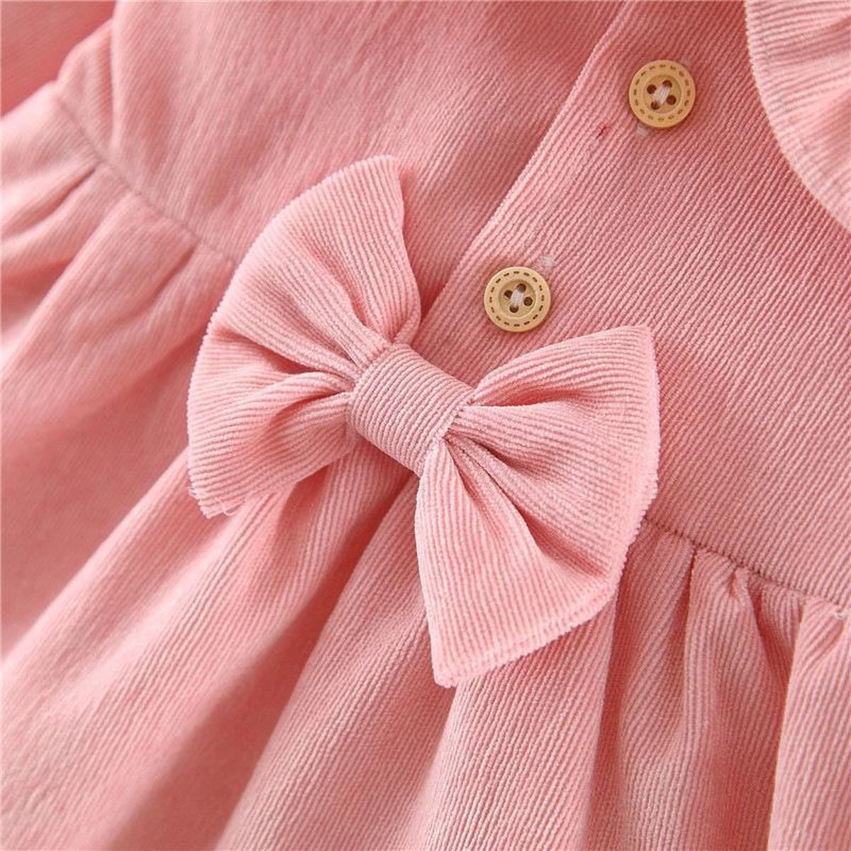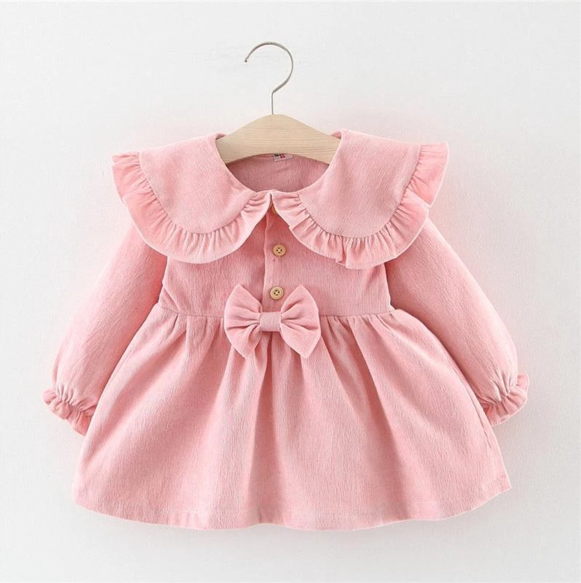 Design babyjurk van het merk Baby Garden met een sierlijke kraag en dun geribd patroon. De jurk is gemaakt van zeer fijn katoen wat zacht aanvoelt. Op de voorkant heeft het jurkje een strik.