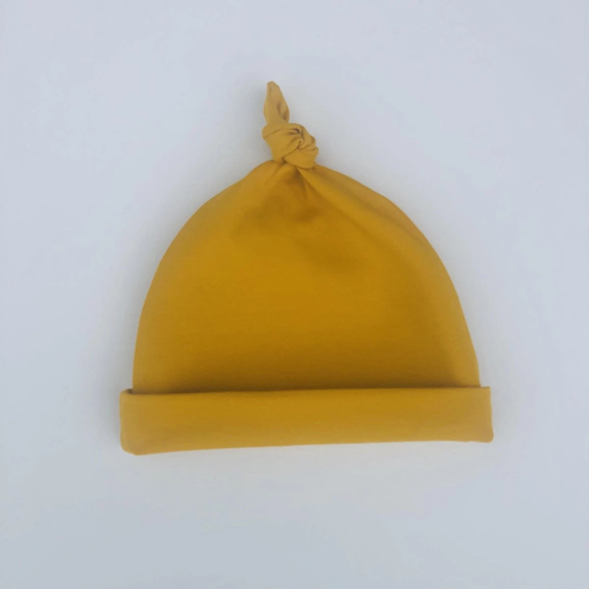 Schattig babymutsje van het merk Huisje4. Dit knoopmutsje van tricot in mooie oker kleur is unisex en houdt het hoofdje van je baby lekker warm.