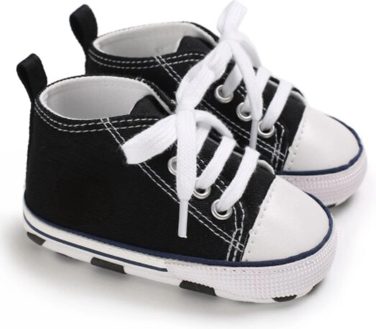 Leuke schattige en stoere baby schoenen. Het is een stevig canvas/textiel baby schoentje met een echte vetersluiting en een zachte zool. Op het zooltje zitten antislip nopjes. Speciaal ontworpen voor baby’s eerste stapjes.