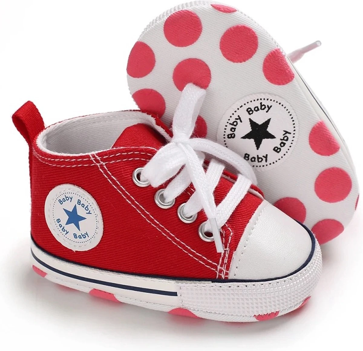Bij WUNO bieden we de leukste en stevigste baby schoenen aan! Onze schoentjes zijn gemaakt van canvas/textiel met een echte vetersluiting en een zachte zool met antislip nopjes. Ideaal voor baby’s die hun eerste stapjes zetten en geschikt voor kinderen van 0 tot 6 maanden (maat 17).