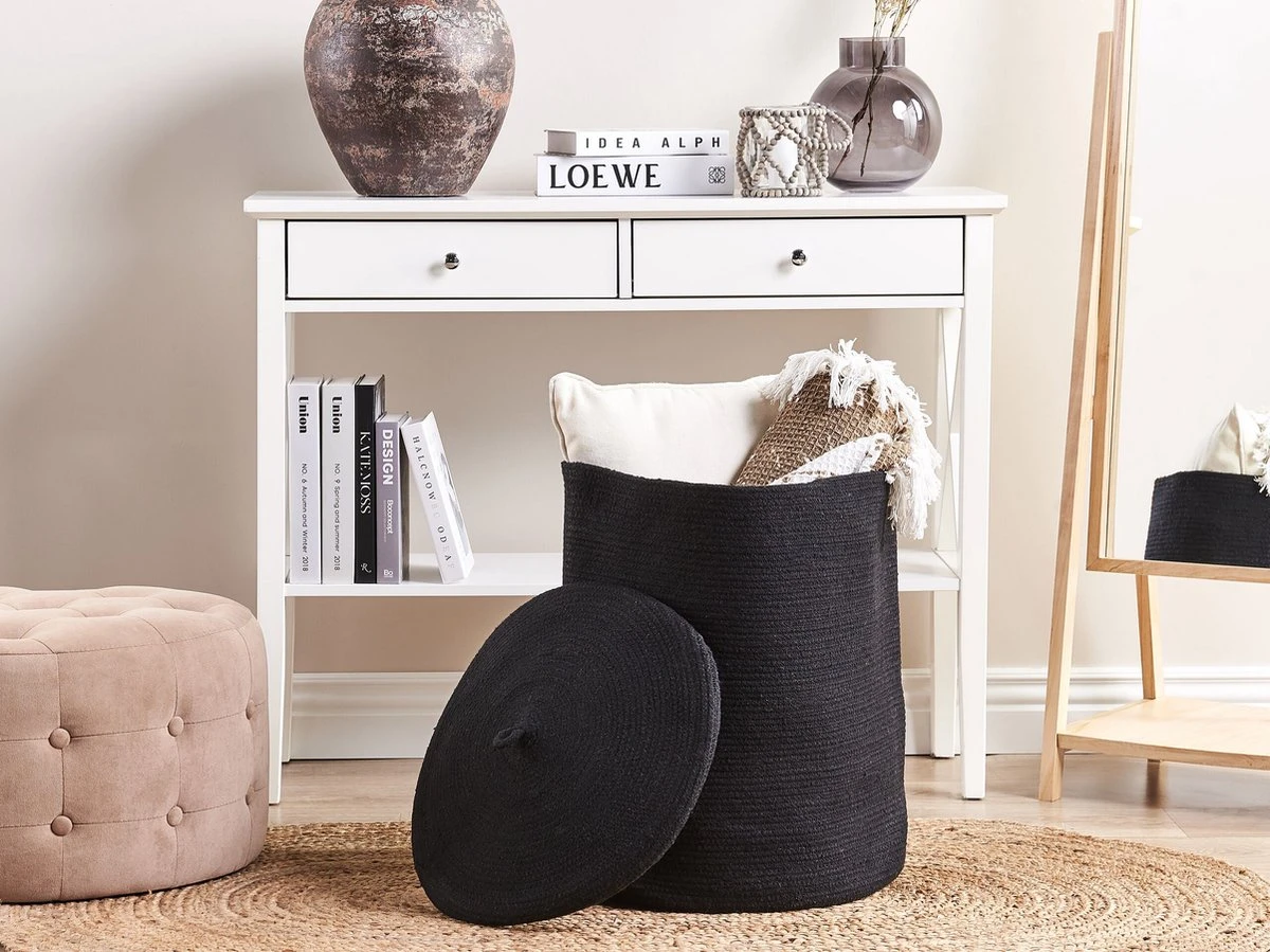 Boho Mand met Deksel. Deze mand staat perfect in je boho-geïnspireerde huis en biedt je handige opbergruimte. Hij kan worden gebruikt om je extra kussens of plaids in op te bergen, maar hij doet het ook goed in de badkamer, als wasmand. Het handgemaakte stuk wordt geleverd met een deksel, in bijpassende stijl en kleuren. Het accessoire is gemaakt van katoen, dus duurzaam en gemakkelijk schoon te maken.