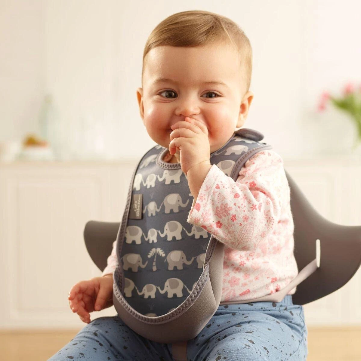 De kleertjes van uw kindje blijven dus schoon! Door het zachte en flexibele materiaal zijn ze prettig om te dragen. De Bibetta slab is er in verschillende frisse kleuren en dessins die ook na vaak wassen mooi blijven. De onderkant wordt naar voren gevouwen zodat er een opvangbakje ontstaat en kan zo het eerste gemorste eten en drinken makkelijk opvangen.