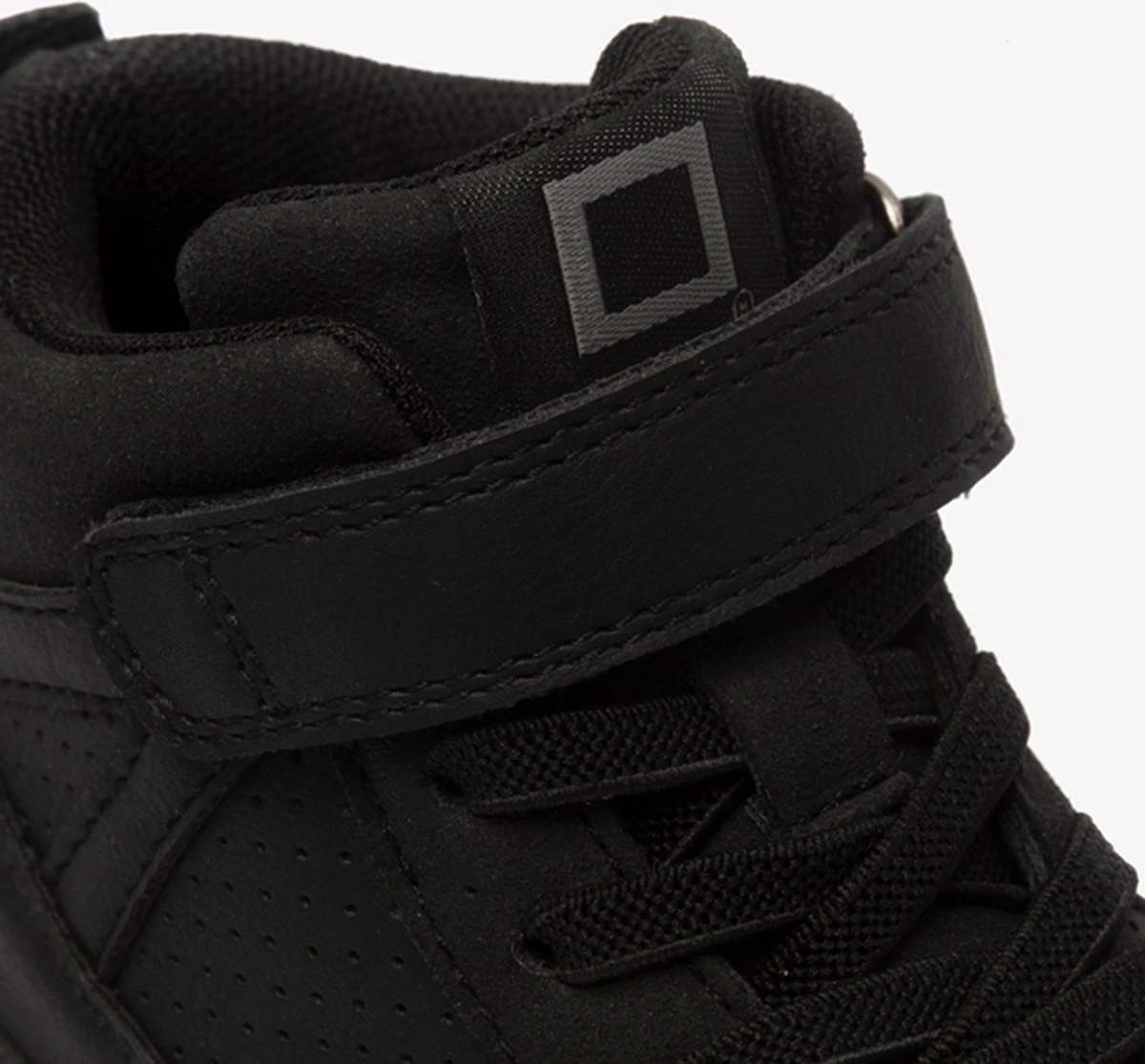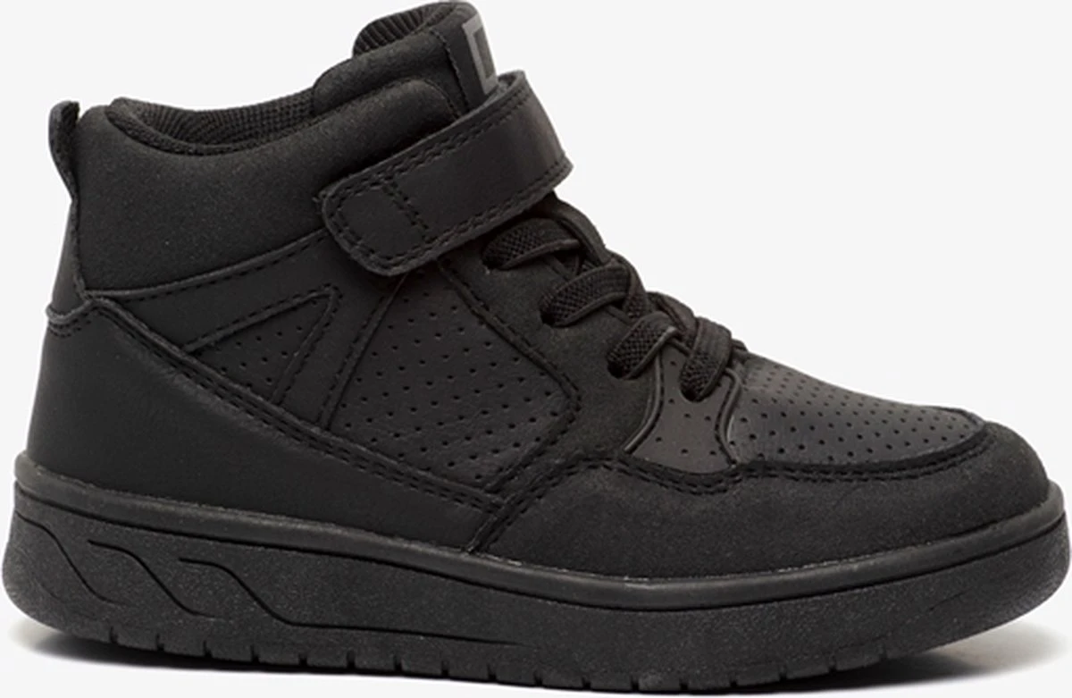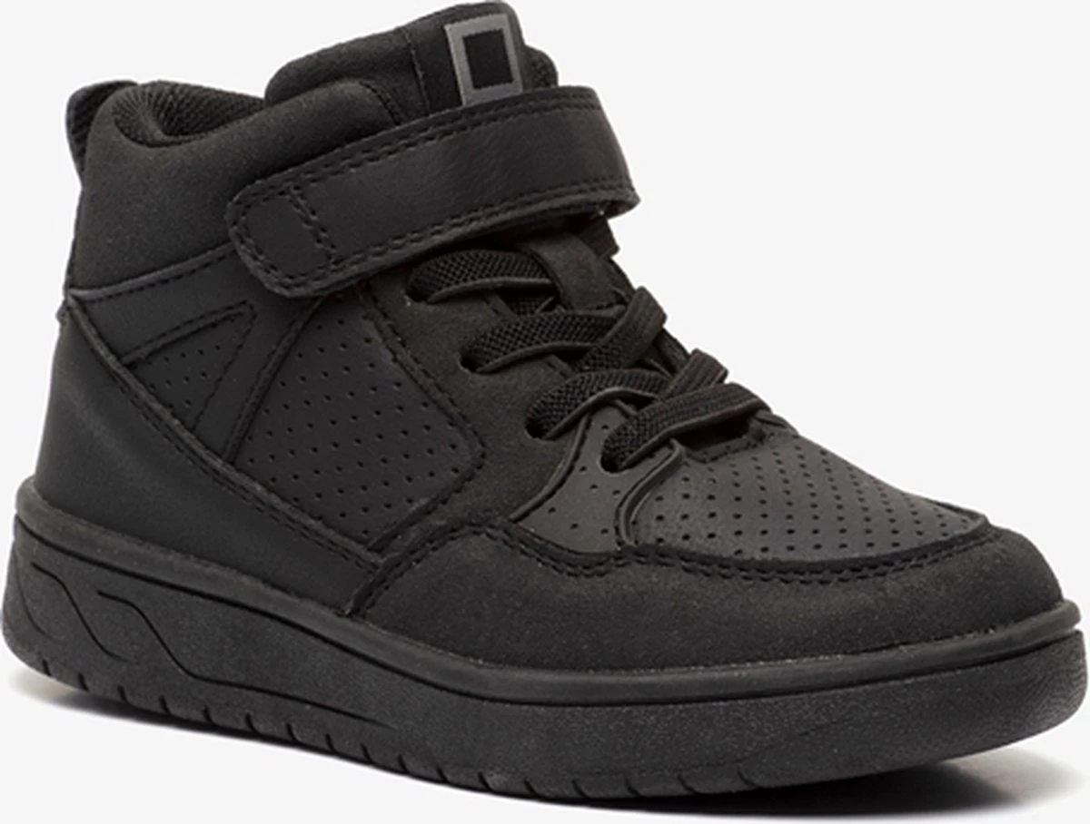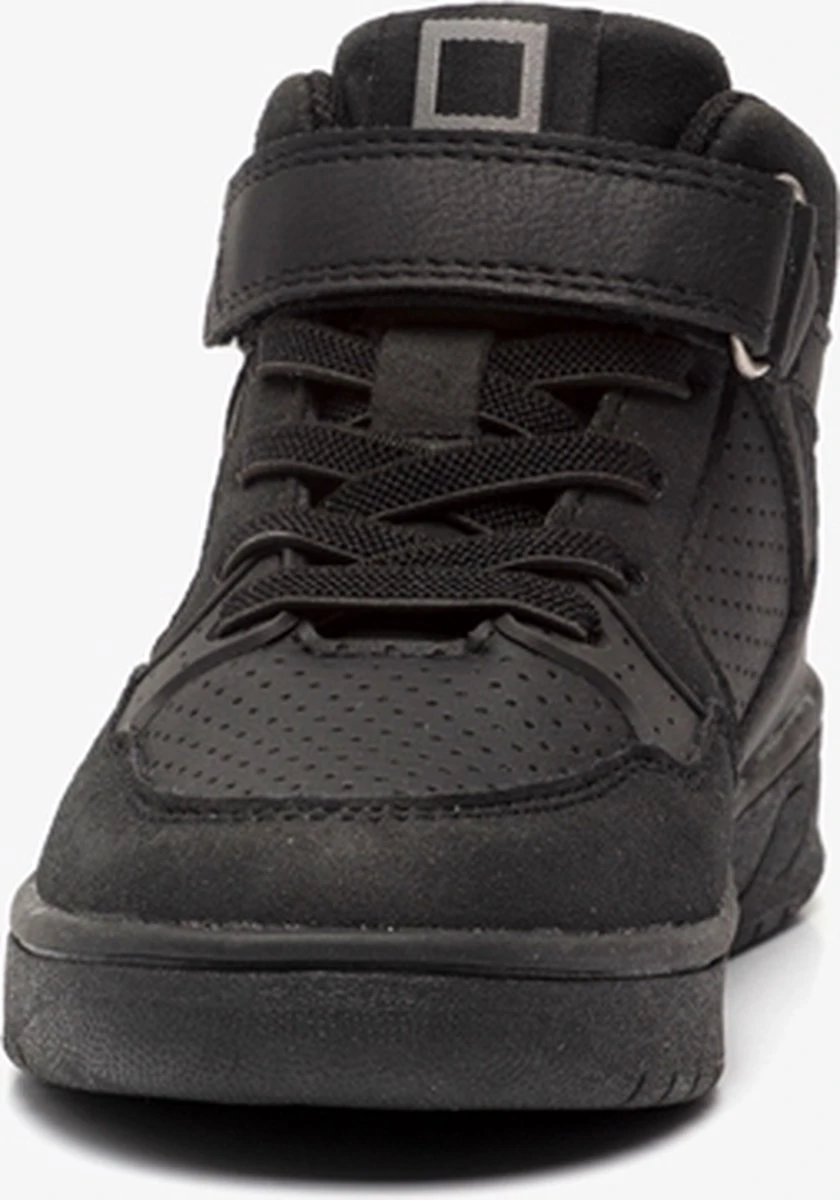 Zwarte Blue Box hoge sneakers voor jongens. Het buitenwerk is gemaakt van imitatieleer en textiel, binnenwerk van textiel en de stevige zool van rubber. Deze stoere schoenen hebben elastische veters en een klittenbandsluiting voor een goede pasvorm. Binnenzool is niet uitneembaar.