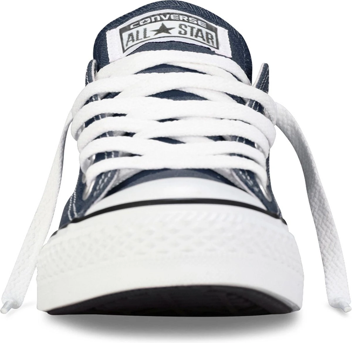 De iconische Converse Chuck Taylor All Star OX Low Top sneakers in het blauw. De schoenen zijn gemaakt van canvas en hebben een voering en binnenzool van textiel. De sneakers zijn uitgevoerd in het lage model dat net onder de enkel valt. De sneakers zijn voorzien van merkopdrukken en een lijn over de rubberen zool die een dikte heeft van 2 centimeter. Door middel van veters zijn de sneakers te sluiten. De Converse Chuck Taylor All Star OX Low Top sneakers hebben een vast voetbed.