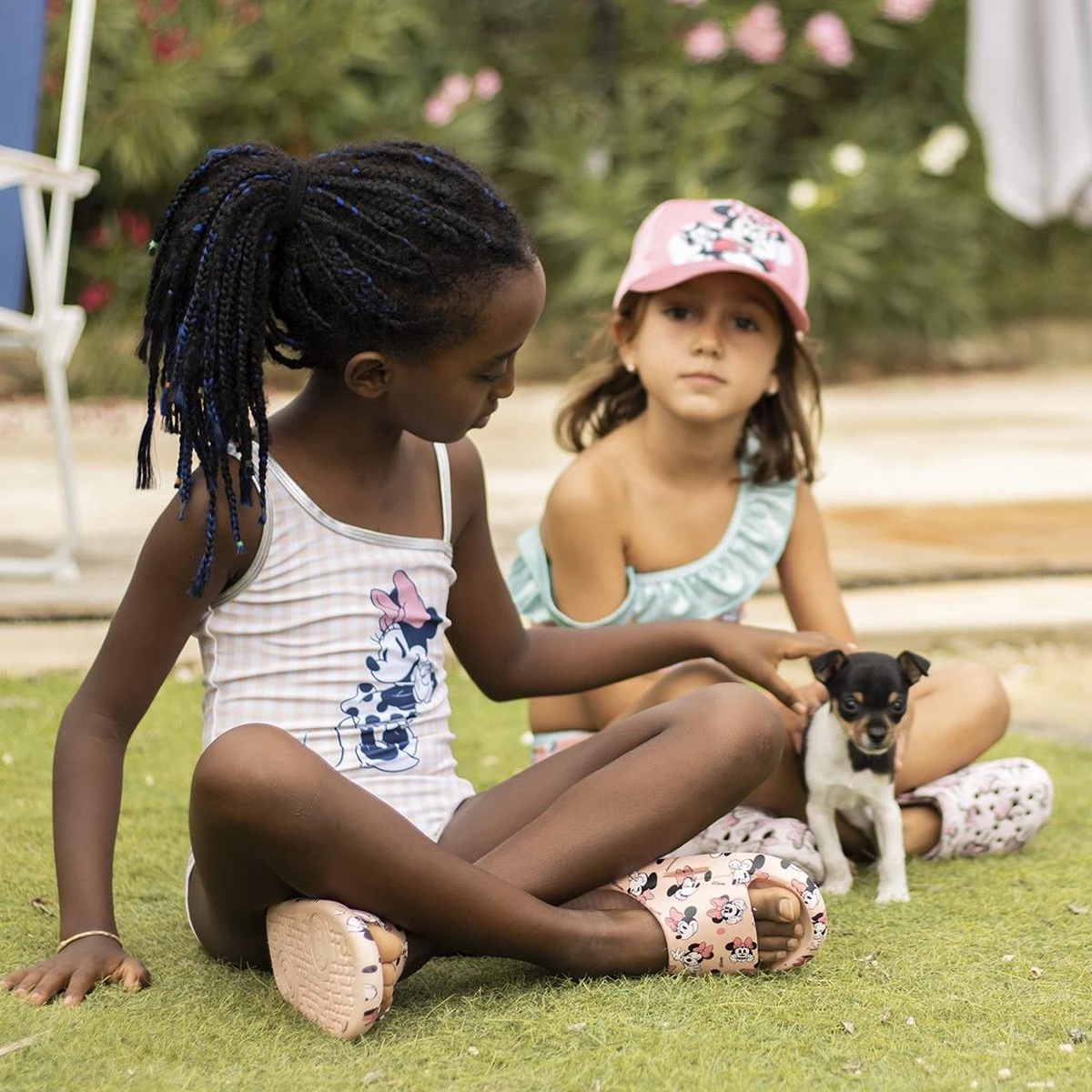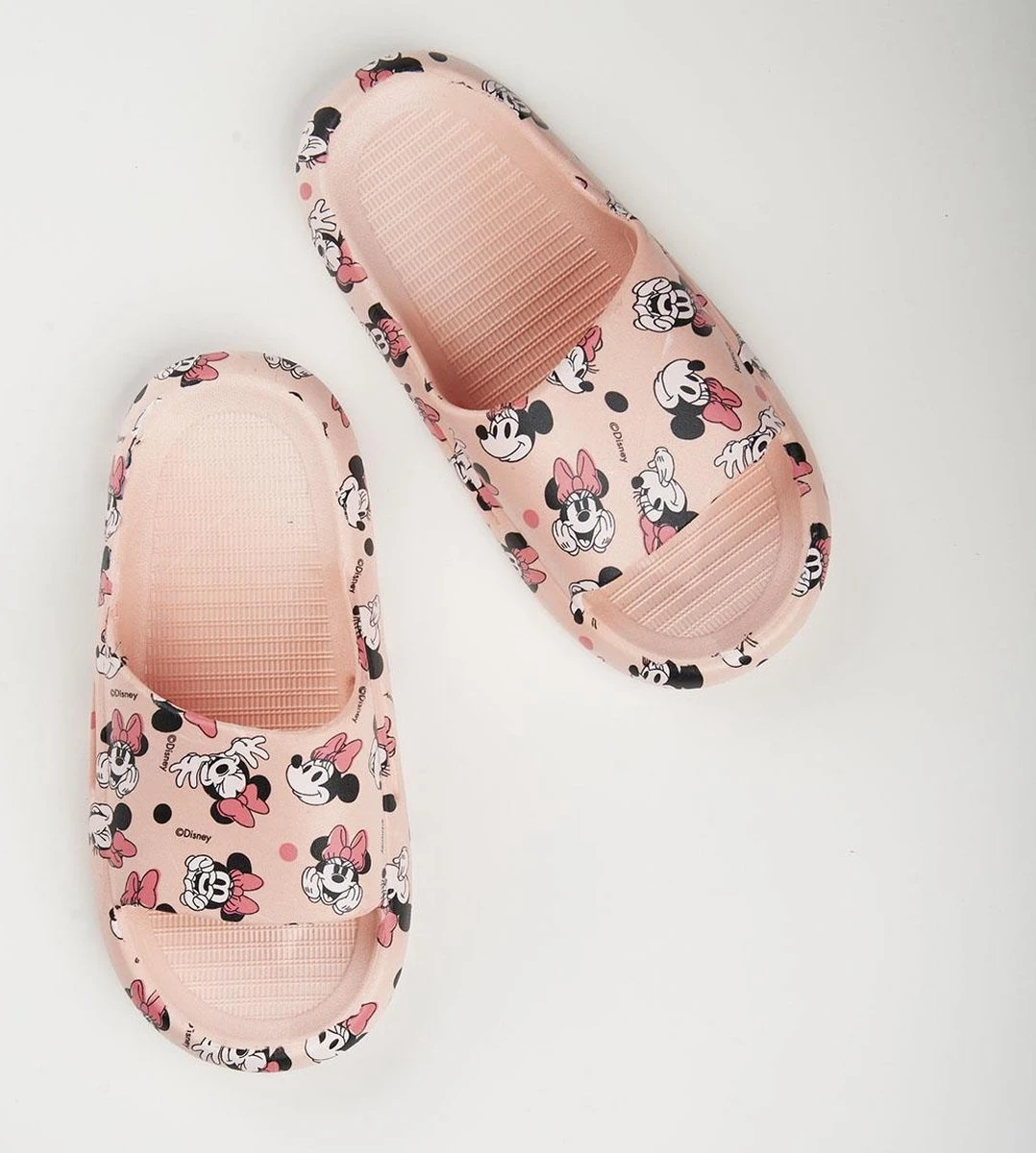 Op de slippers vind je verschillende illustraties van Minnie Mouse.