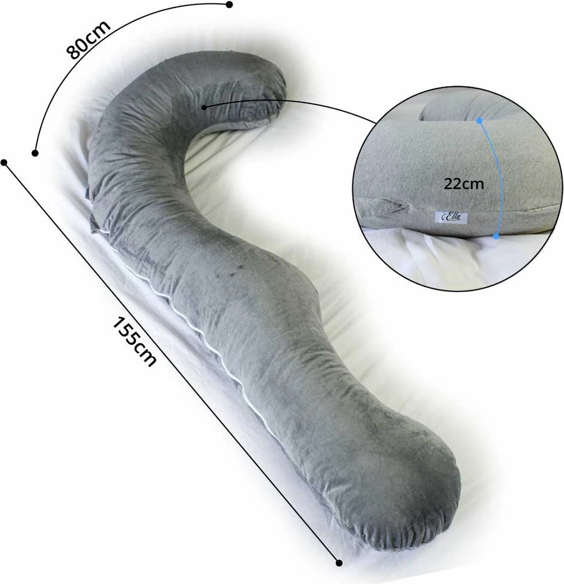 Het multifunctionele zwangerschapskussen van Ella is gemaakt om een comfortabele en goede houding aan te nemen voor een optimale nachtrust tijdens de zwangerschap en erna. Het ondersteunt het gehele lichaam vanaf de hals, de wervelkolom tot aan de heupen. Wanneer je kindje is geboren is kun je het gebruiken als voedingskussen.