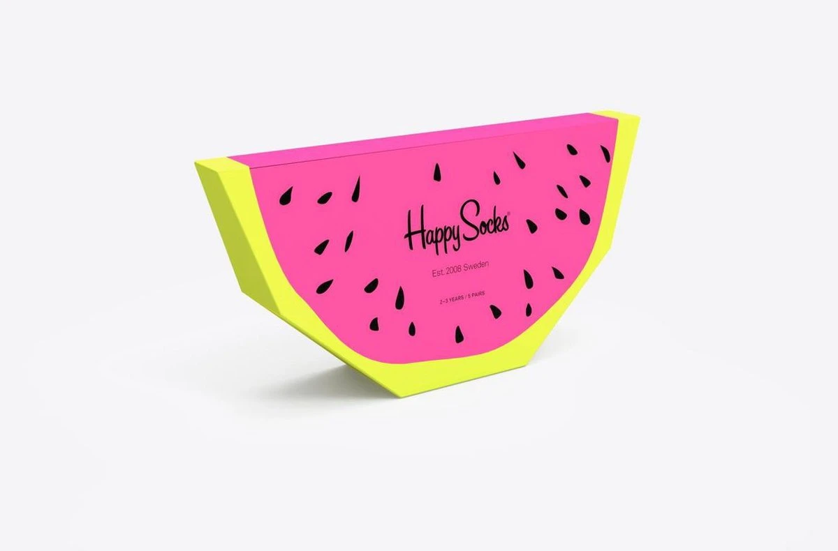 Happy Socks heeft voor de kleintjes een super gave fruitige giftbox ontworpen, in de vorm van een slice watermeloen. In deze box zitten 5 fruitige styles; bananen, kersen, aarbeien en watermeloenen. Ieder kind zal hier super blij van worden.