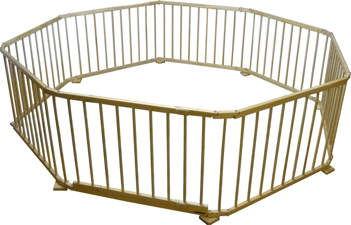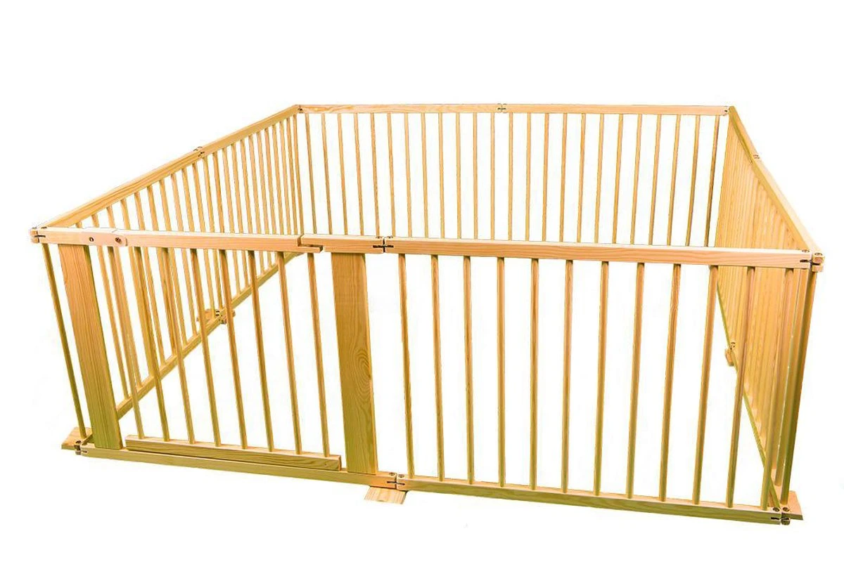 Deze box is inklapbaar en bestaat uit acht panelen die op verschillende manieren eenvoudig aan elkaar bevestigd kunnen worden. Zo is het mogelijk om een achthoek, een cirkel of een vierkant te maken. Door panelen weg te laten kan er ook een kleinere speelruimte worden afgebakend. Daarnaast kunnen de panelen ook als veiligheidshek worden gebruikt om een ruimte of trap af te sluiten.