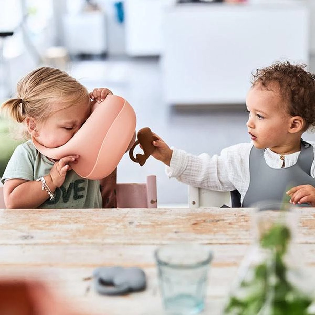 Met deze flexibele siliconen slab kan jouw kind helemaal los gaan aan tafel. Oefenen met zelfstandig eten, yoghurt van de handen slikken of lekker sabbelen aan die slice meloen? Met deze slab erbij vind jij het allemaal prima. De vloeistof en klodders lekken niet door op de kleding.