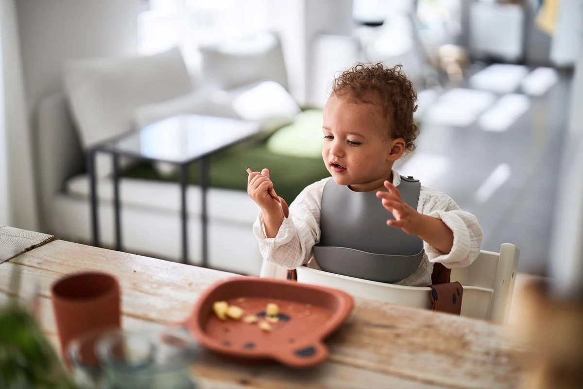 Met deze flexibele siliconen slab kan jouw kind helemaal los gaan aan tafel. Oefenen met zelfstandig eten, yoghurt van de handen slikken of lekker sabbelen aan die slice meloen? Met deze slab erbij vind jij het allemaal prima. De vloeistof en klodders lekken niet door op de kleding.