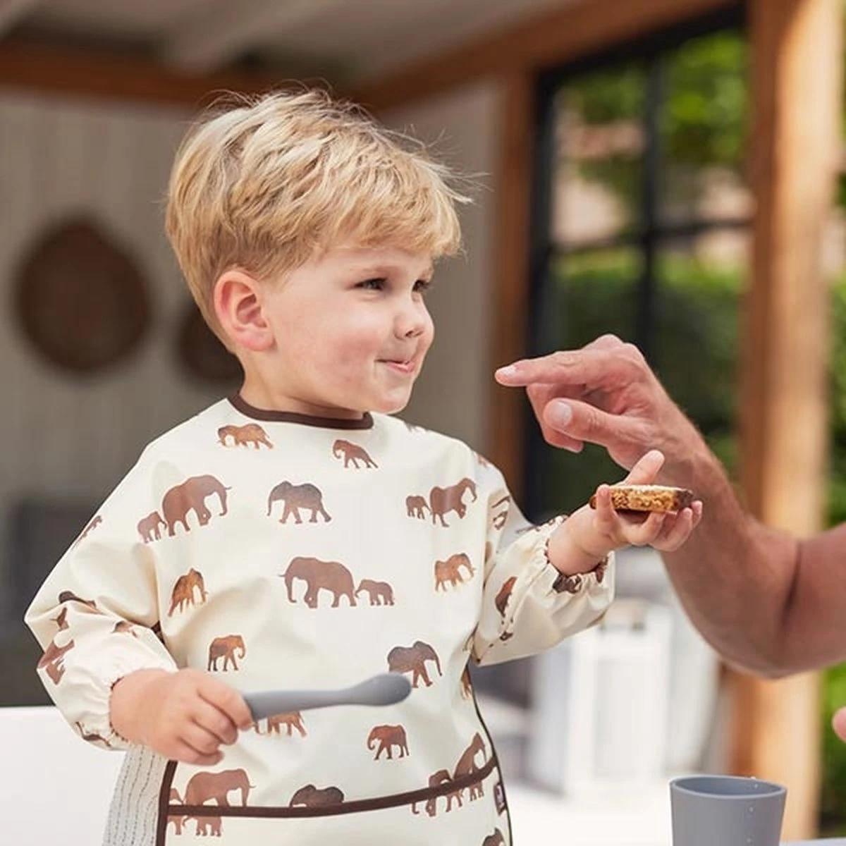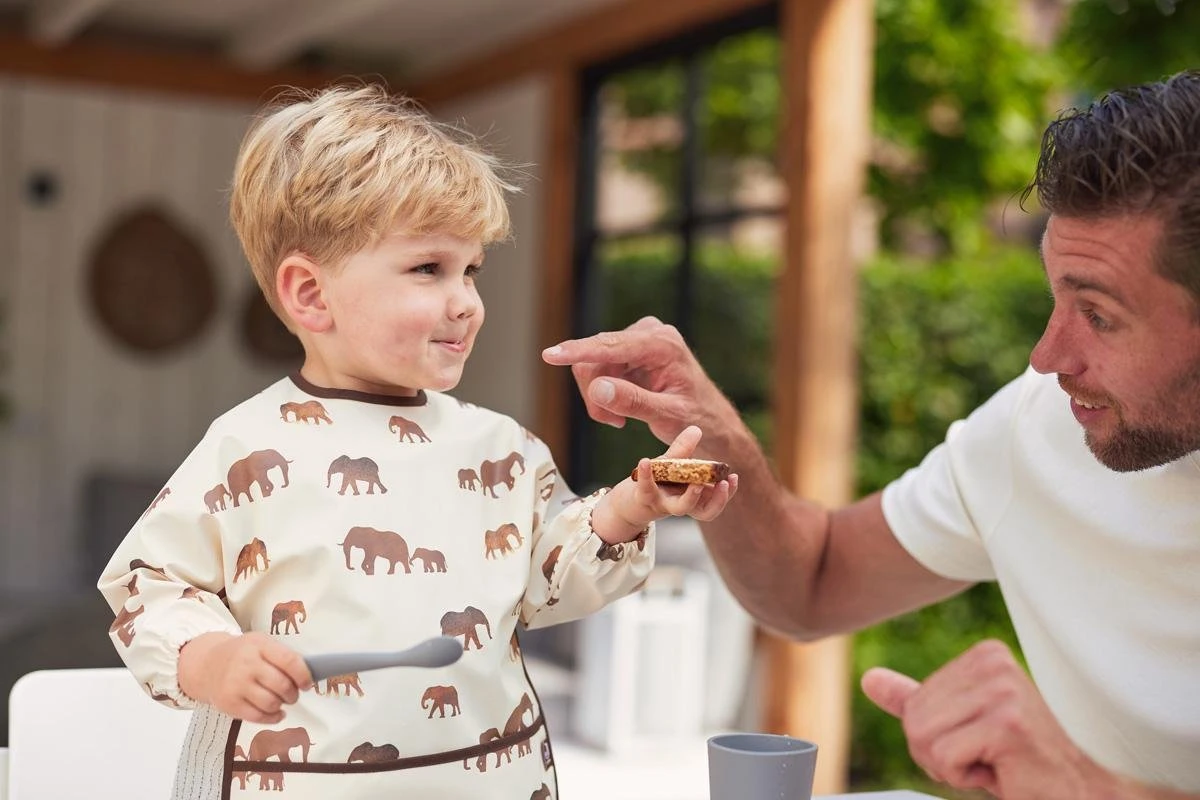 Deze slab is niet alleen handig voor de eetmomenten, maar ook knutselen en vingerverven kan nu extra eenvoudig worden georganiseerd. Want met zo’n verfschortje weet je: de kleding blijft in elk geval schoon!