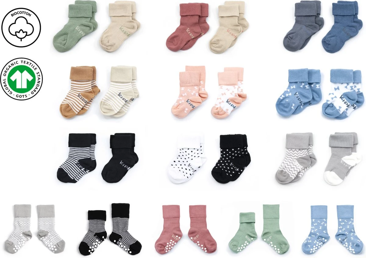 Deze Blijf-Sokjes van KipKep hebben een ingebreid elastisch bandje boven het hakje, de zongenaamde “Blijf-Zone”. Dit bandje zorgt ervoor dat de sokjes niet gaan schuiven. Dankzij dit bandjes én de ideale pasvorm blijven de sokjes goed en lekker zitten. Natuurlijk hebben onze sokjes een zachte platte teennaad (seamless) die niet irriteert. Mooie comfortabele baby sokjes, maar dan slimmer! De KipKep Blijf-Sokjes zijn gemaakt van biologisch katoen (GOTS). Wasvoorschrift: Je kunt de sokjes wassen op 30 graden. Rek na het drogen de sokjes uit om ze in de oorspronkelijke vorm te krijgen en hang ze op de waslijn. Niet drogen in de droogtrommel.
