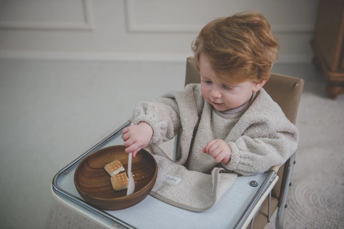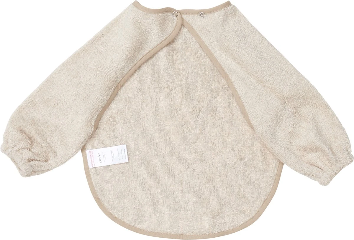 Het Koeka slabbetje met mouw is speciaal ontwikkeld voor als je kindje zelf gaat eten. Door het grote formaat en de mouwen die zijn voorzien van elastiek bij de polsen, beschermt de slabber goed tegen knoeien. De drukknoopsluiting heeft twee verschillende standen waardoor de slabber geschikt is voor zowel baby als peuter.