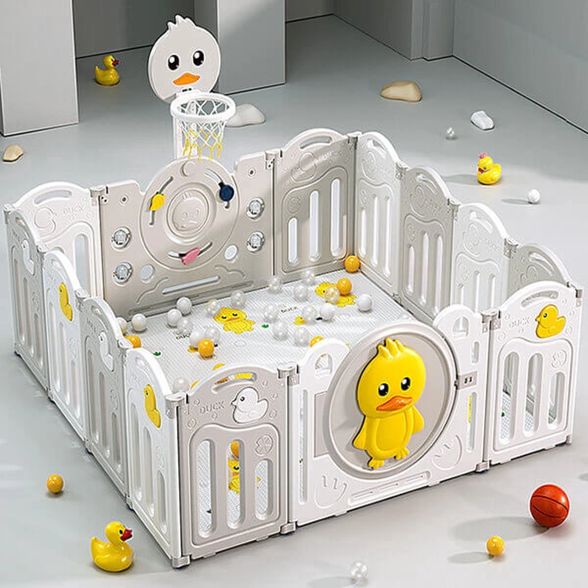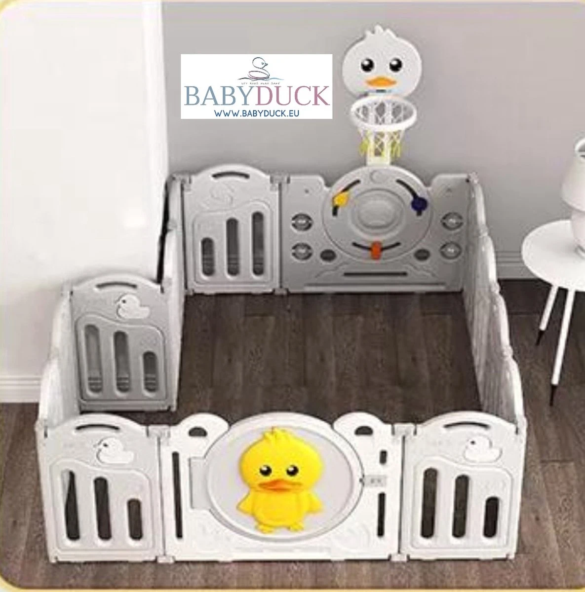 Deze leuke Babyduck grondbox voldoet aan alle normen en is degelijk uitgevoerd. De grondbox heeft afgeronde hoeken zonder scherpe randen.