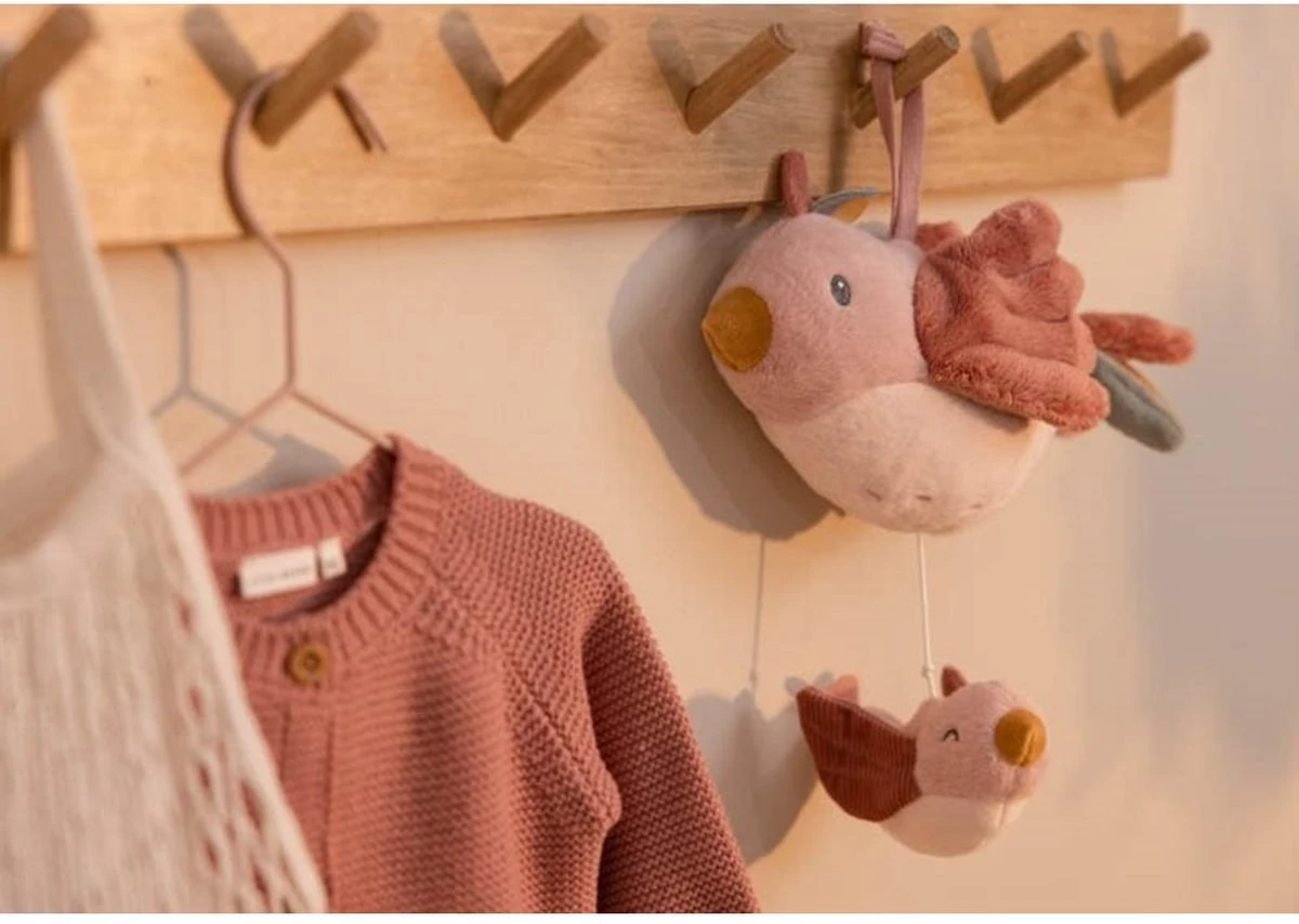 Deze mooie muziekdoos uit de serie Flowers & Butterflies van het merk Little Dutch zorgt ervoor dat je kindje lekker kan slapen. Het lieve slaapliedje zorgt ervoor dat je kindje rustig wordt en lekker in slaap kan vallen. Trek aan het roze vogeltje en de muziek zal zijn werk doen. De muziekdoos is makkelijk te bevestigen aan de box, wieg of het ledikantje. Buiten dat hij erg handig is is hij ook nog eens een hele leuke aankleding van je kinderkamer.