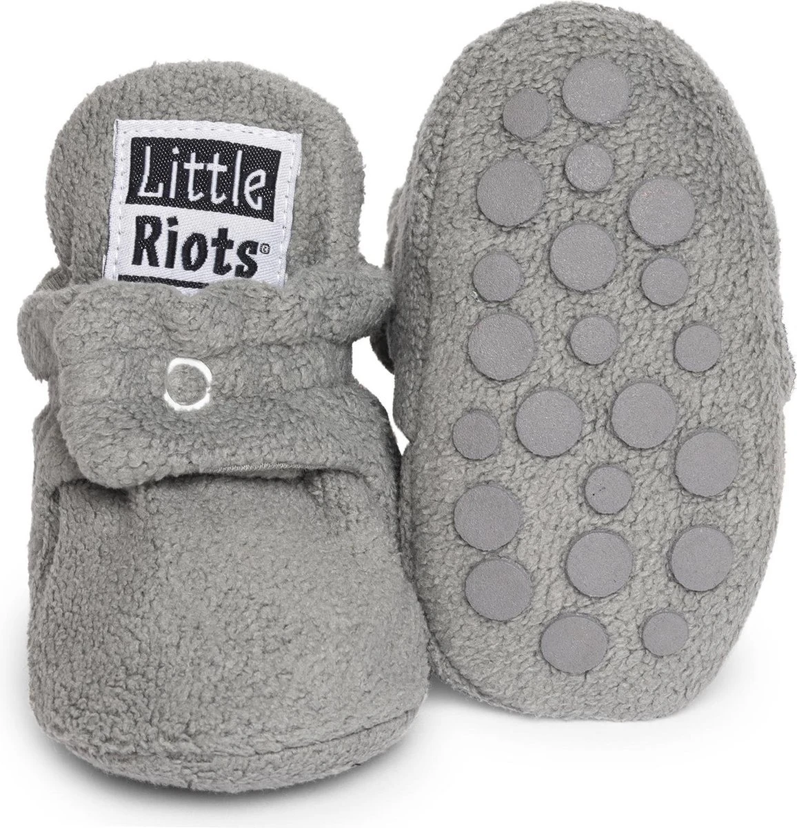 De warme Little Riots anti slip slofjes zijn gemaakt van fleece met een binnenvoering van organisch katoen. Hierdoor zijn de slofjes lekker zacht en beschermen ze de voetjes tegen kou, zonder dat de voetjes zweterig worden.
