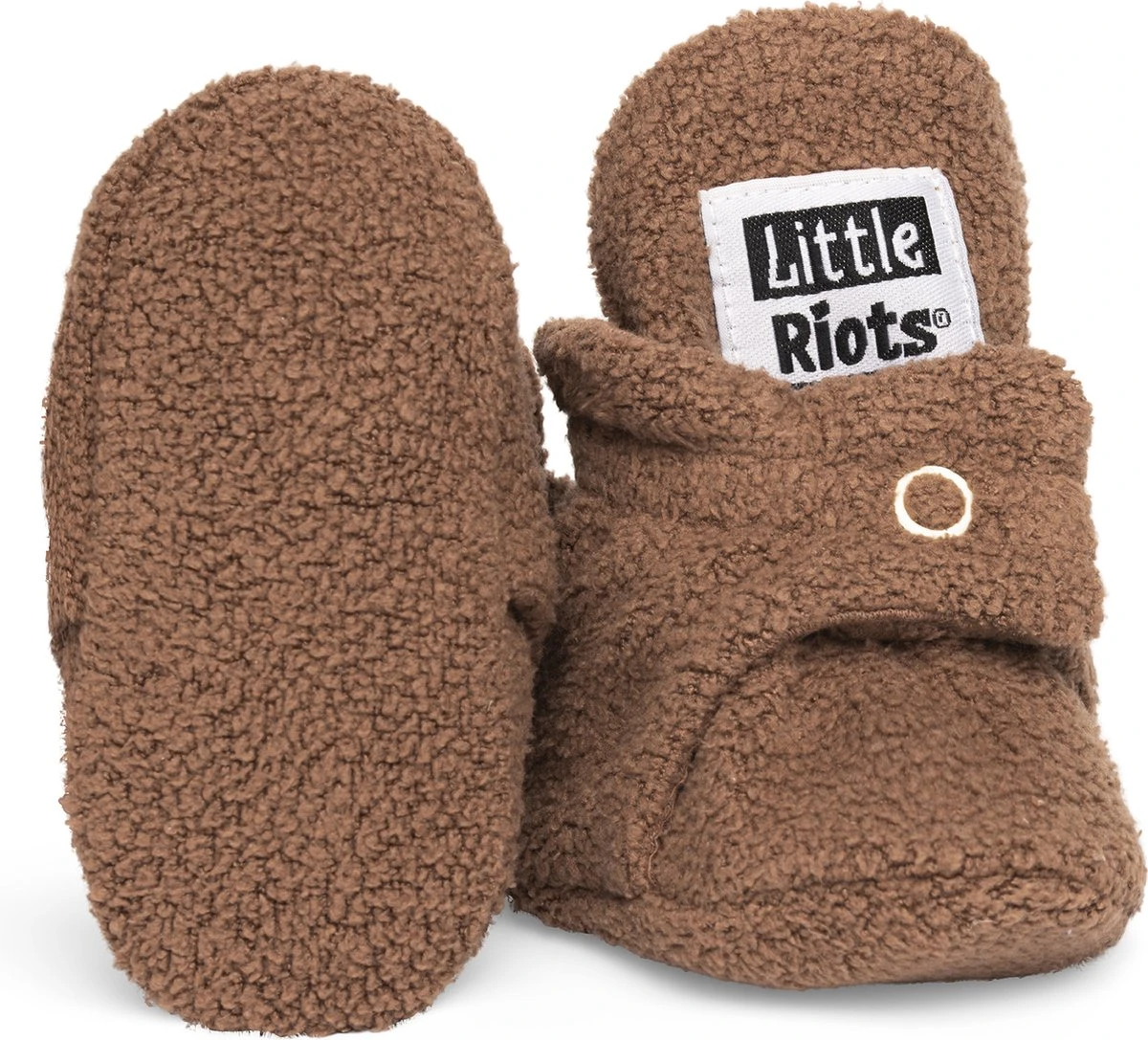 De warme Little Riots slofjes zijn gemaakt van fleece met een binnenviering van organisch katoen. Hierdoor zijn de slofjes lekker zacht en beschermen ze de voetjes tegen kou, zonder dat de voetjes zweterig worden.