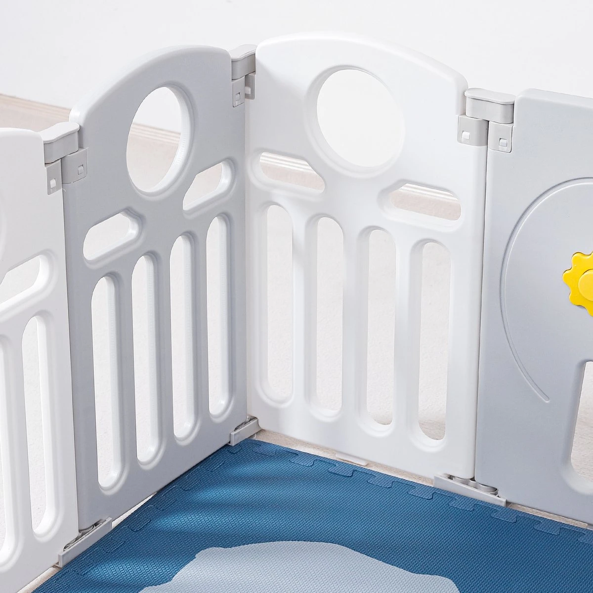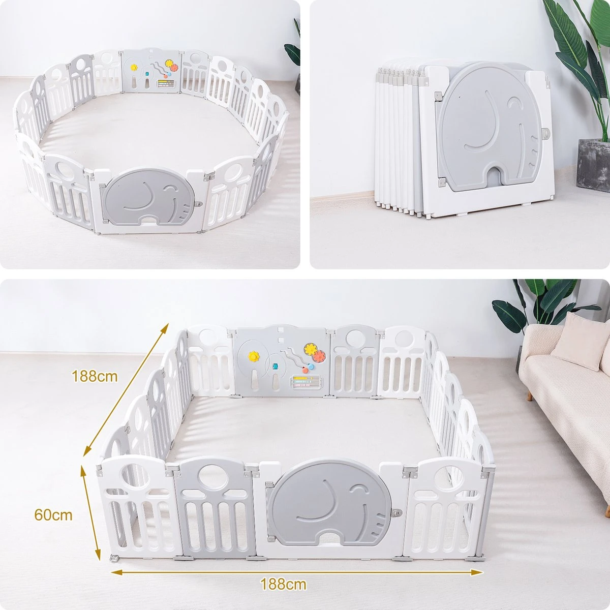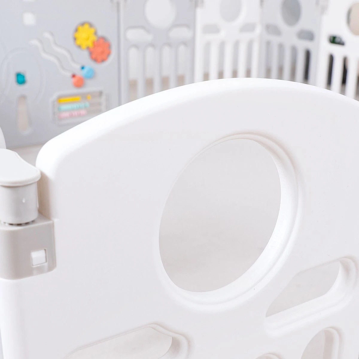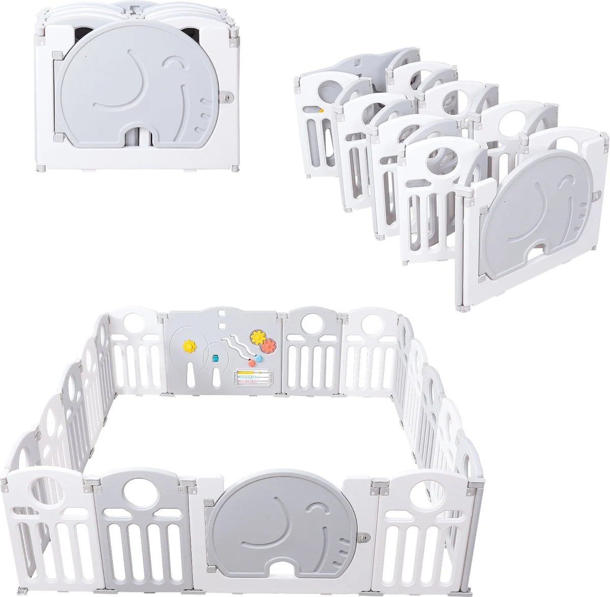 Met deze praktische speelbox van Little Toby creëer je in een mum van tijd een veilige en vermakelijke speelplek voor je baby of peuter. De grondbox is eenvoudig uit te klappen en bestaat uit 16 panelen, een deur en een educatief speelpaneel. De totale omtrek van de box is ongeveer 7.5 meter, waardoor je kind veel speelruimte heeft en de box heeft afgeronde hoeken ter bescherming van je kleintje.