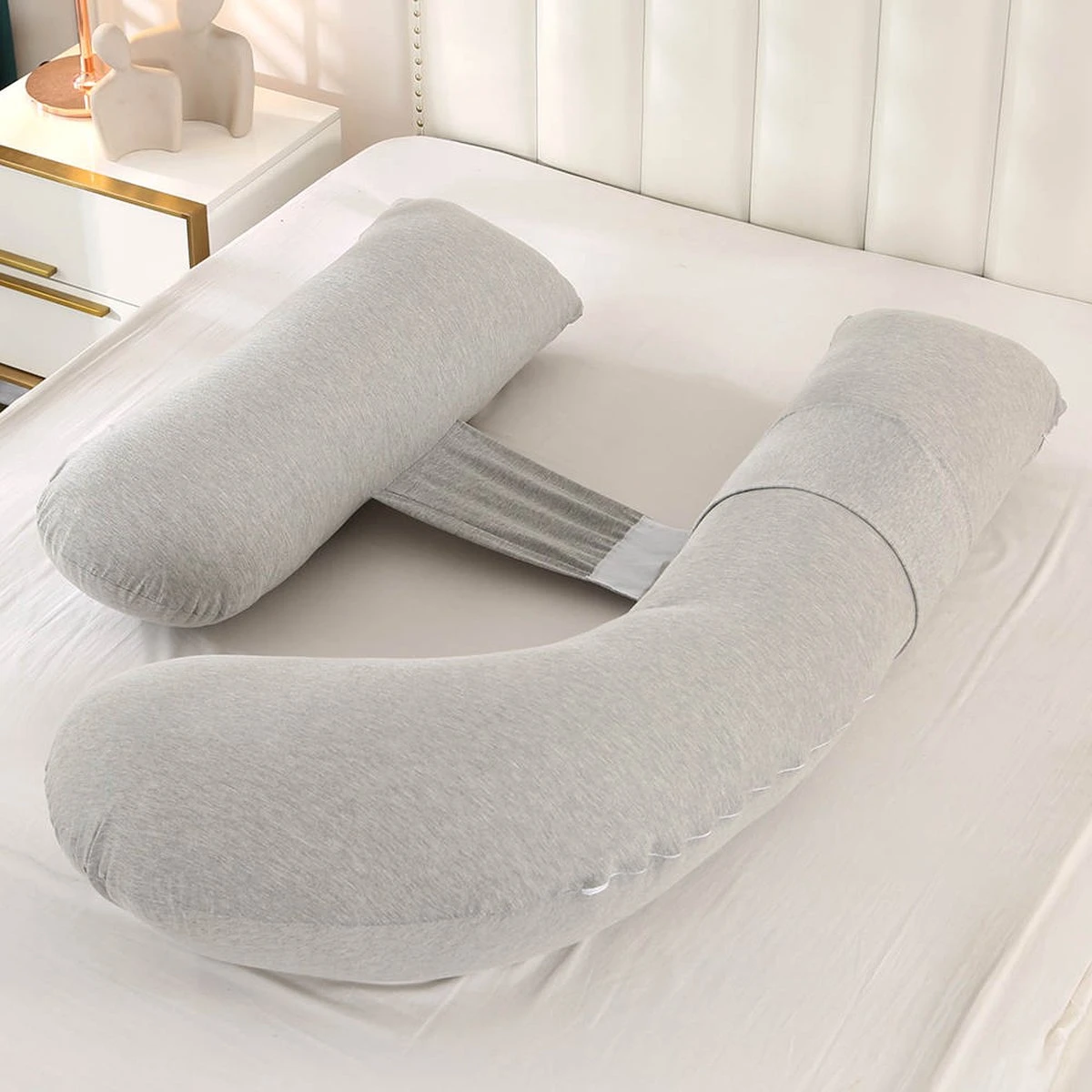 Last van een verstoorde nachtrust tijdens de zwangerschap? Het XXL zwangerschapskussen van Lopoleis biedt de perfecte uitkomst. Dit perfect gevormde en heerlijk zachte kussen zorgt ervoor dat u altijd comfortabel kunt liggen. Het kussen biedt extra steun in de rug, de knieën en de onderkant van de buik. Hierdoor heeft u geen pijn of andere zwangerschapsklachten meer.