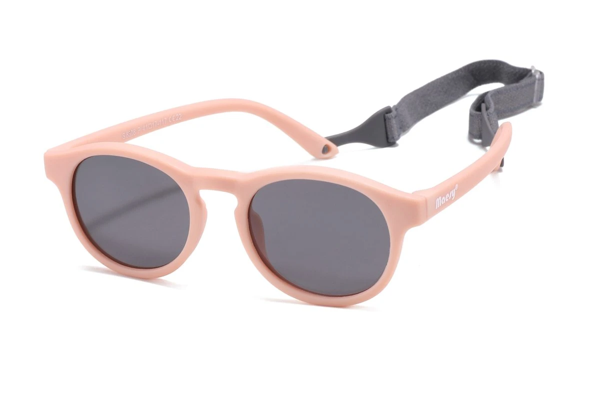 Ook baby’s, dreumesen en peuters hebben last van fel zonlicht. De licht roze baby zonnebril ‘Bowi’ van Maesy is niet alleen een hippe, schattige eyecatcher, maar ook een heuse en serieuze sun-catcher!