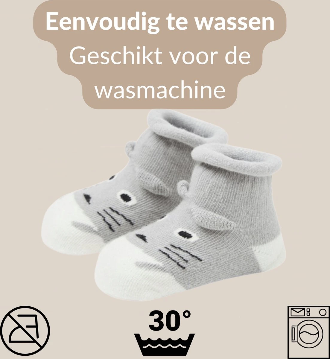 De sokkies zijn gemakkelijk te wassen en kunnen mee met de normale 30 graden was. De sokkies behouden altijd hun mooie pasvorm. Ze zijn niet geschikt voor de droger.