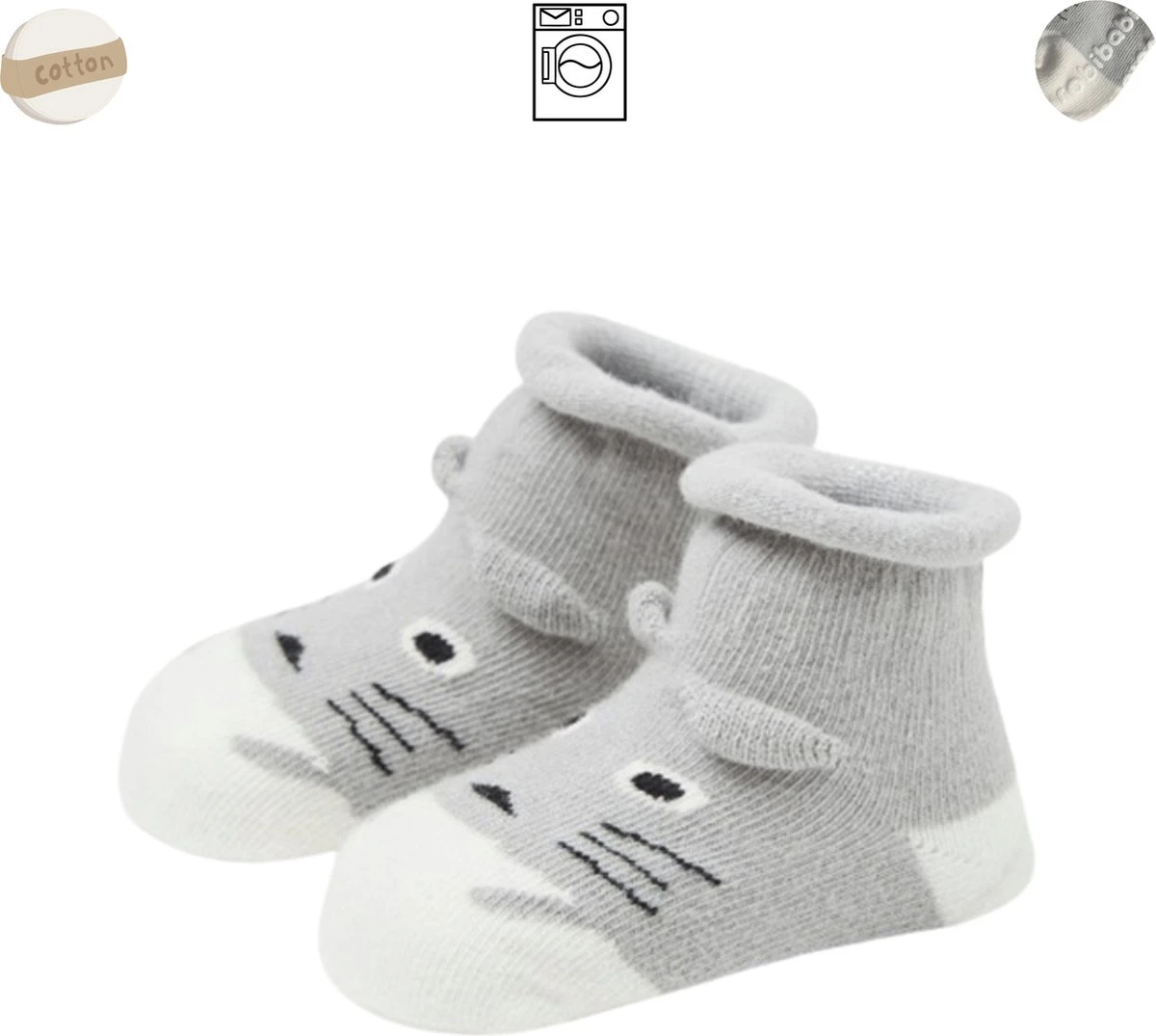De sokkies zijn van katoen gemaakt, dit zorgt ervoor dat de baby het lekker warm heeft en de sokkies comfortabel zitten.