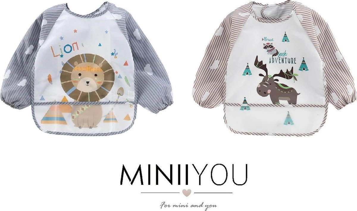 Merkloos Duo Pack – Leeuw & Eland | Slabbetje Lange Mouwen Met Brede Opvangbak (1-3 Jaar) – Mag In Vaatwasser/ Wasmachine