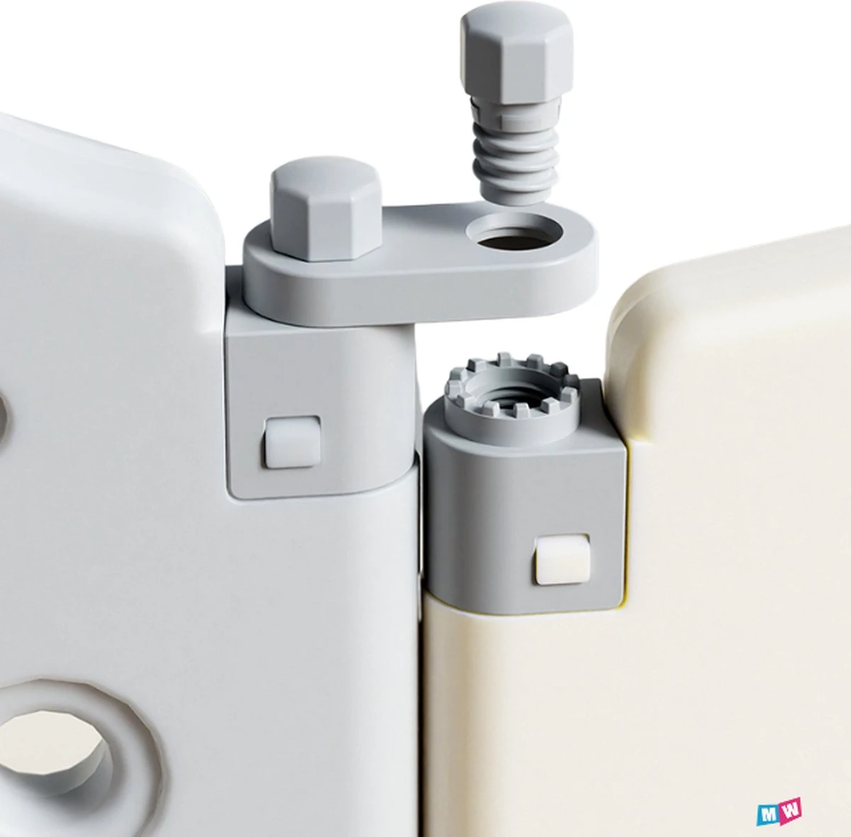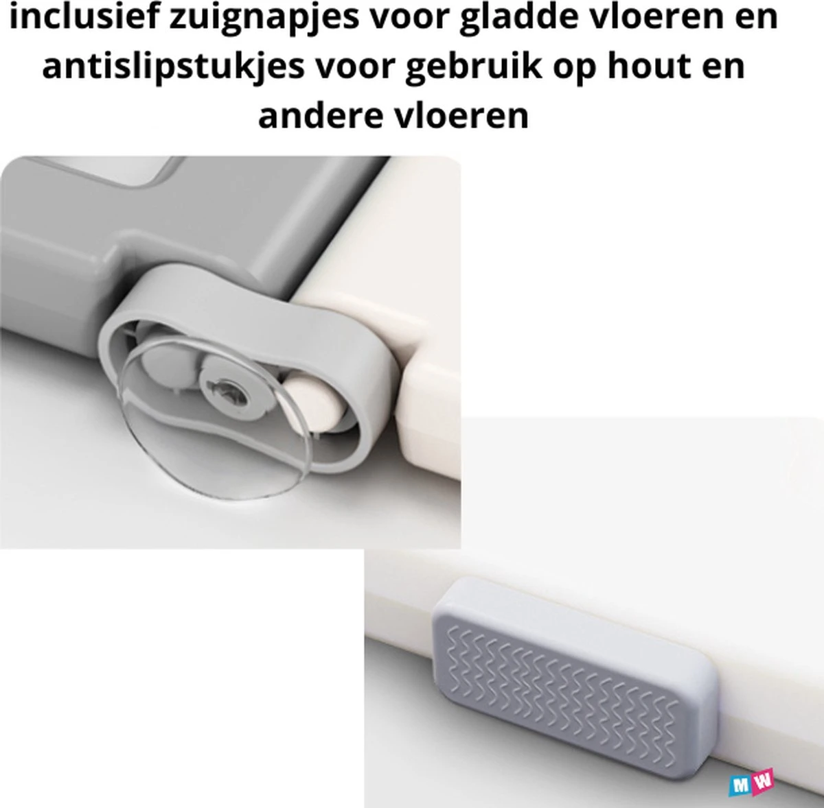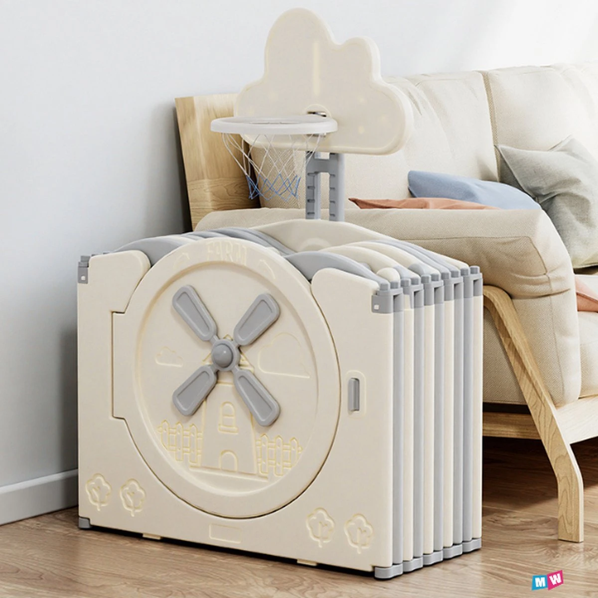De grondbox heeft afgeronde hoeken zonder scherpe randjes. De kleuren zijn zacht waardoor het perfect in het interieur past. De grondbox is ook heel makkelijk op te zetten en weer op te ruimen zodat het geen “sta in de weg” op moment dat je hem niet nodig hebt. Aan de onderkant zitten zuignapjes waardoor hij stevig op een gladde vloer gezet kan worden.