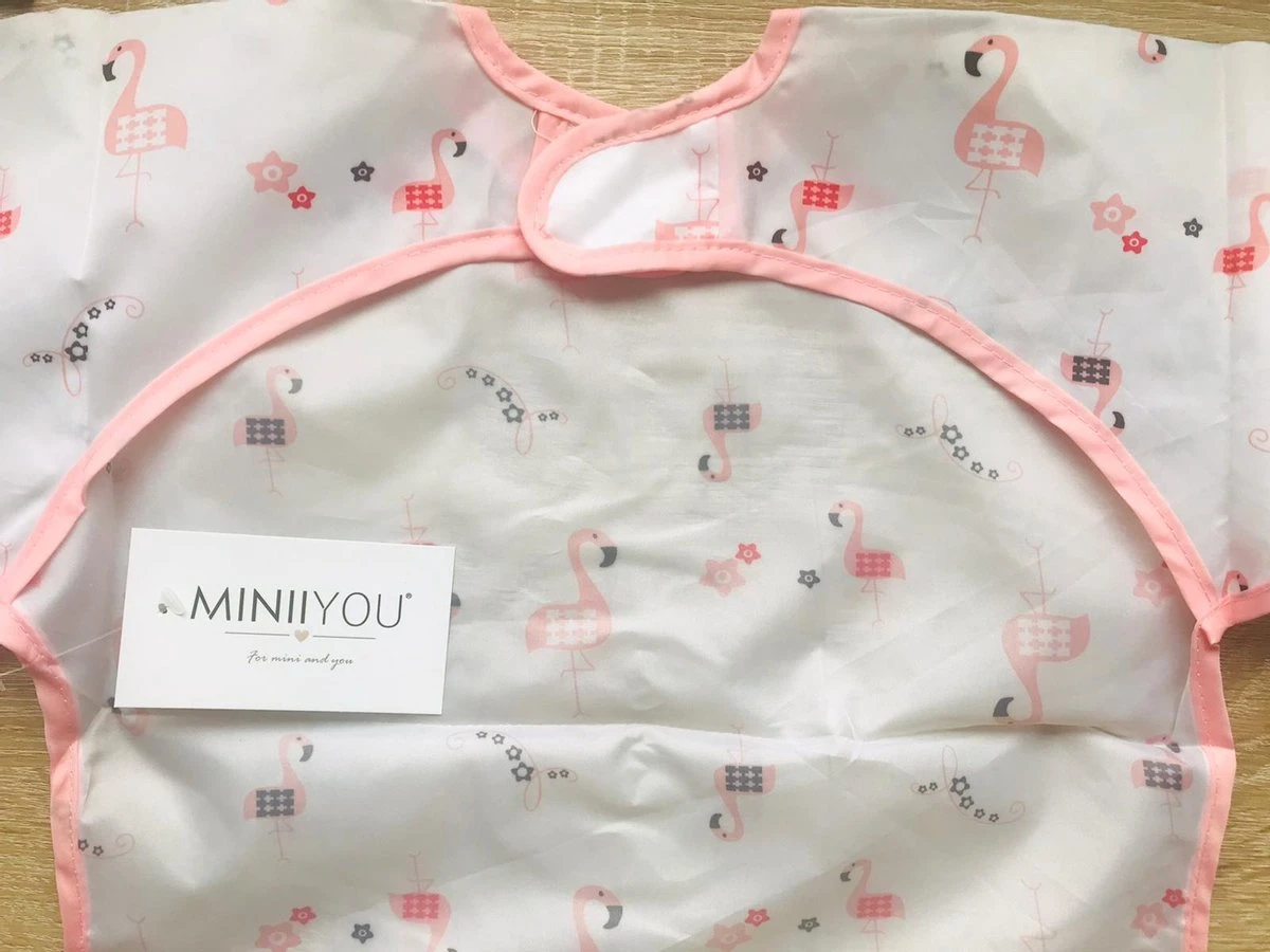 Deze leuke kunststof Slabber met lange mouwen beschermt de kleding van jouw MINII tegen nare etensvlekken en etensresten.