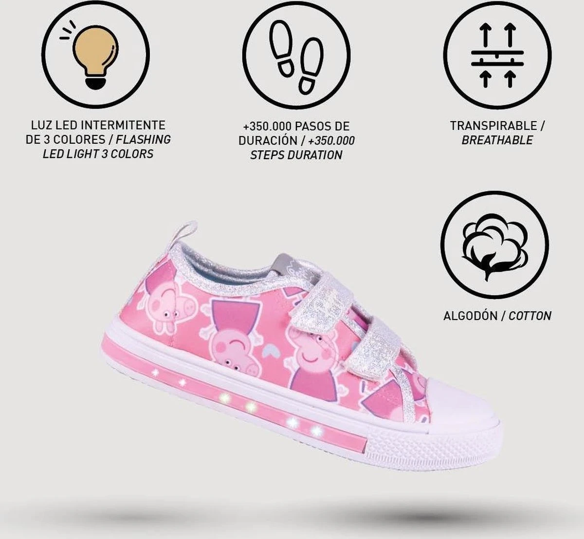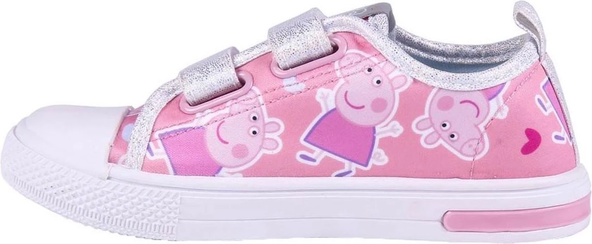 Op de schoenen vind je Peppa Pig en allemaal kleine hartjes.