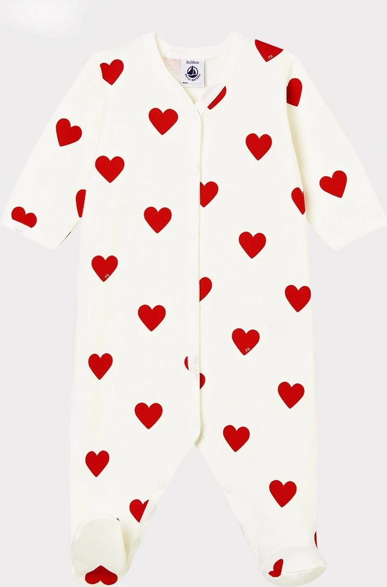 Petit Bateau Molton Slaappakje Met Rode Hartjes Voor Baby Meisjes Boxpak – Maat 56