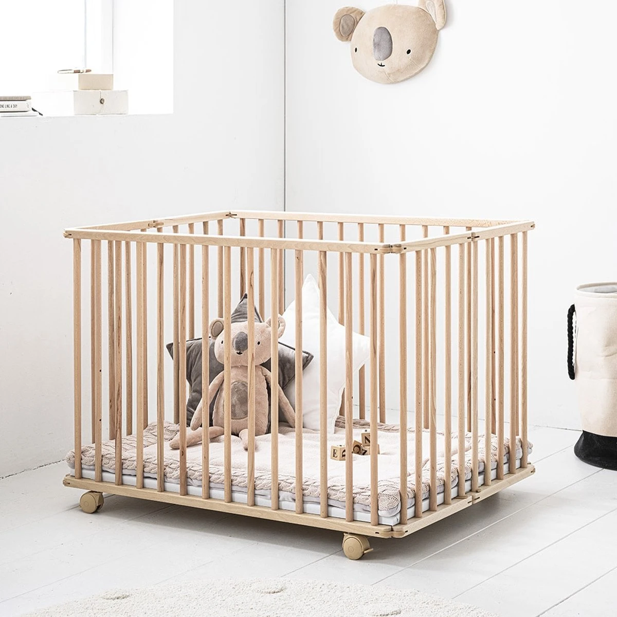 baby box Tigre is een hele handige inklapbare baby box met wieltjes die in elke woonkamer past! De opvouwbare box biedt door de afmeting van 100×74 voldoende ruimte voor je baby. Daarnaast heeft de box een in hoogte verstelbare bodem. De baby box heeft ronde spijlen waaraan je kindje zich gemakkelijk kan vastpakken.