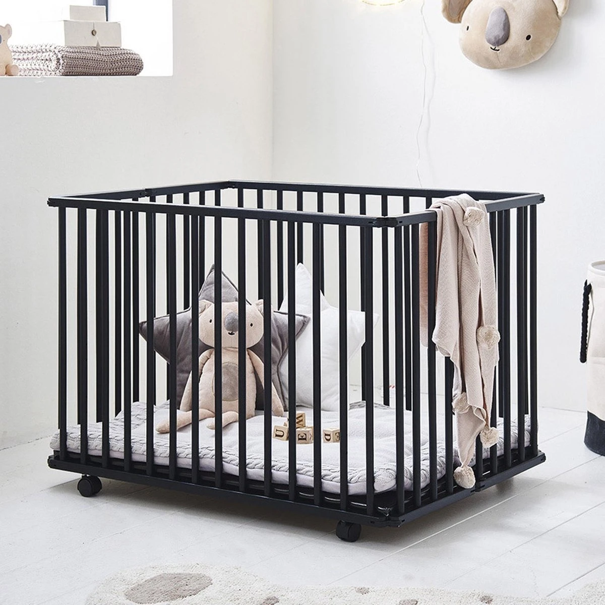 baby box Panthere is een hele handige inklapbare baby box met wieltjes die in elke woonkamer past! De opvouwbare box biedt door de afmeting van 100×74 voldoende ruimte voor je baby. Daarnaast heeft de box een in hoogte verstelbare bodem. De baby box heeft ronde spijlen waaraan je kindje zich gemakkelijk kan vastpakken.