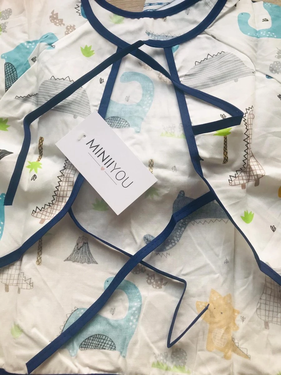 Deze leuke kunststof – katoenen Slabber met lange mouwen beschermt de kleding van jouw MINII tegen nare etensvlekken en etensresten.