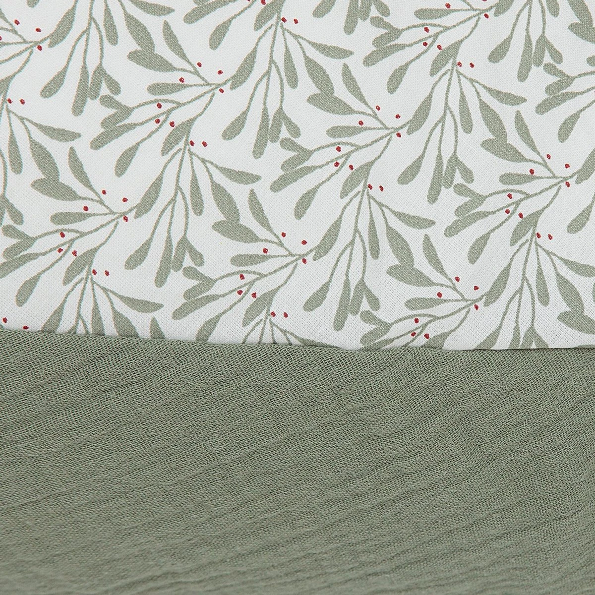 De Snoozzz voedingskussenhoes Slichen is gemaakt van 100% katoen, Hydrofiel. Deze soepele stof is ventilerend en heeft een zachte en fijne structuur waardoor deze heel geschikt is voor een voedingskussen. De bovenzijde is wit met een fijne print. De onderzijde heeft een mooie olijf groene kleur.