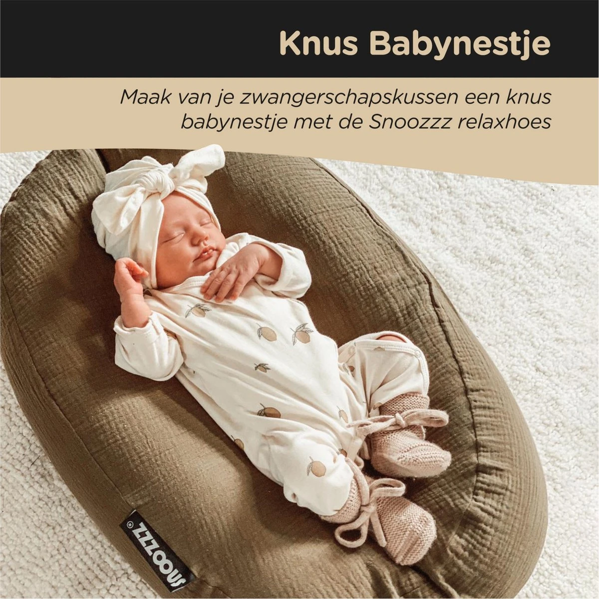 ✓ in combinatie met de Snoozzz relaxhoes maak je in een handomdraai een knus babynestje van je zwangerschapskussen. Zo heb je nog heel lang plezier van je zwangerschapskussen