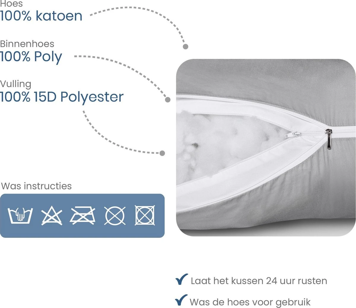 De hoezen zijn gemaakt van 100% Katoen waardoor het kussen comfortabel en zacht aanvoelt.