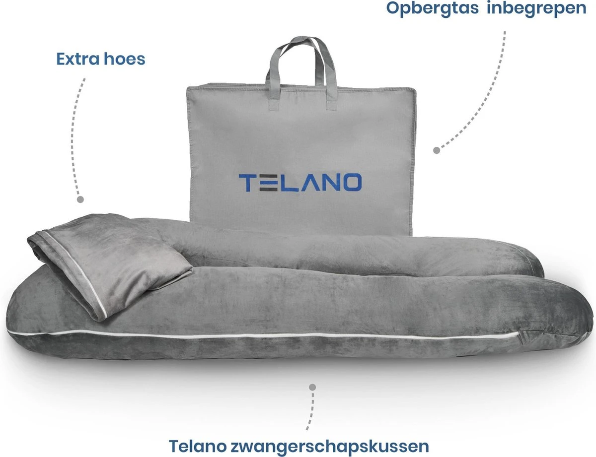 Het Telano zwangerschapskussen of ook wel genoemd het voedingskussen, geeft optimaal comfort en volledige lichaamsondersteuning tijdens en na de zwangerschap. Het zwangerschapskussen zorgt voor een ontspannen nachtrust doordat het het je rug, schouders en nek ondersteunt. Daarnaast biedt het kussen tevens een goede ondersteuning bij het voeden van je baby zodat je op een comfortabele manier je baby, borst of flesvoeding kan geven.