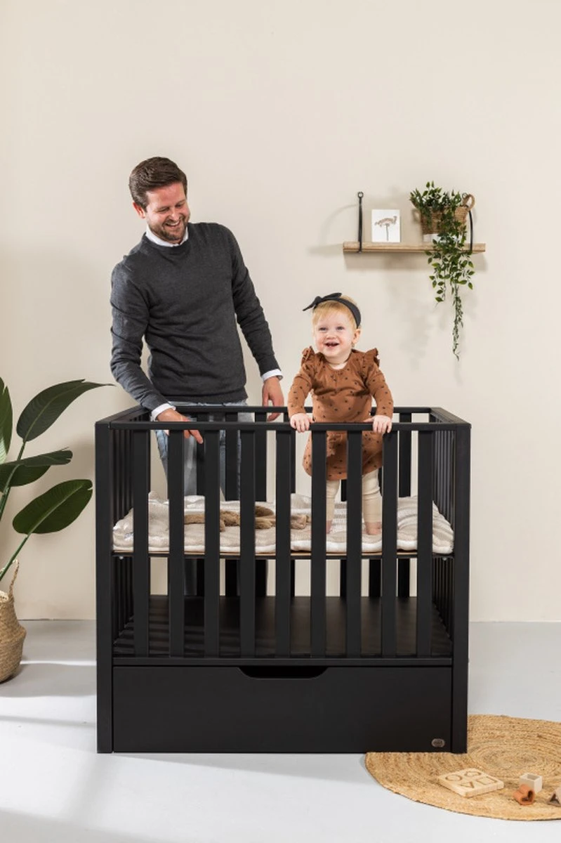 De grote opberglade is voorzien van wieltjes en geleiders aan de zijkant. Handig om al het speelgoed netjes op te bergen binnen handbereik. Deze lade is inbegrepen.