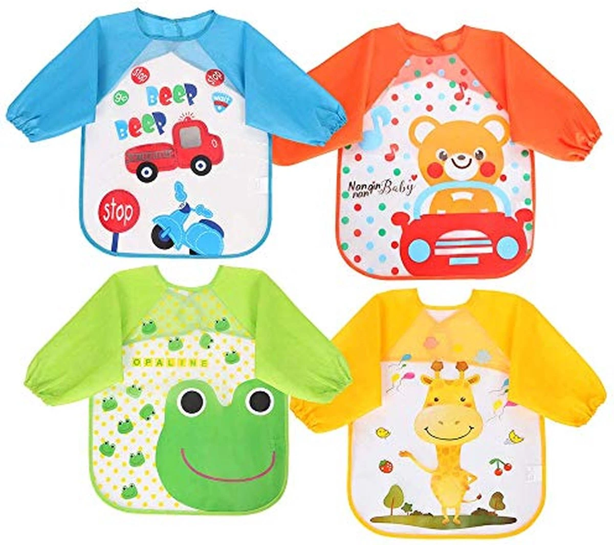 Onmisbaar voor baby’s te beschermen tijdens eten of als knutselschort, slabbetje met mouwen.