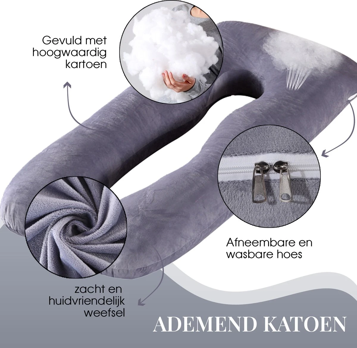 Met dit zwangerschapskussen zorg jij ervoor dat jij een stuk comfortabeler kunt slapen, zodat jij weer helemaal uitgerust wakker wordt. Het zwangerschapskussen heeft een ergonomisch ontwerp en biedt de perfecte ondersteuning aan het lichaam. De buitenkant van het kussen voelt heerlijk zacht aan en is lekker om mee te knuffelen. De vulling van het kussen heeft daarnaast de ideale combinatie van zachtheid en stevigheid, om jou te voorzien van de beste ondersteuning.