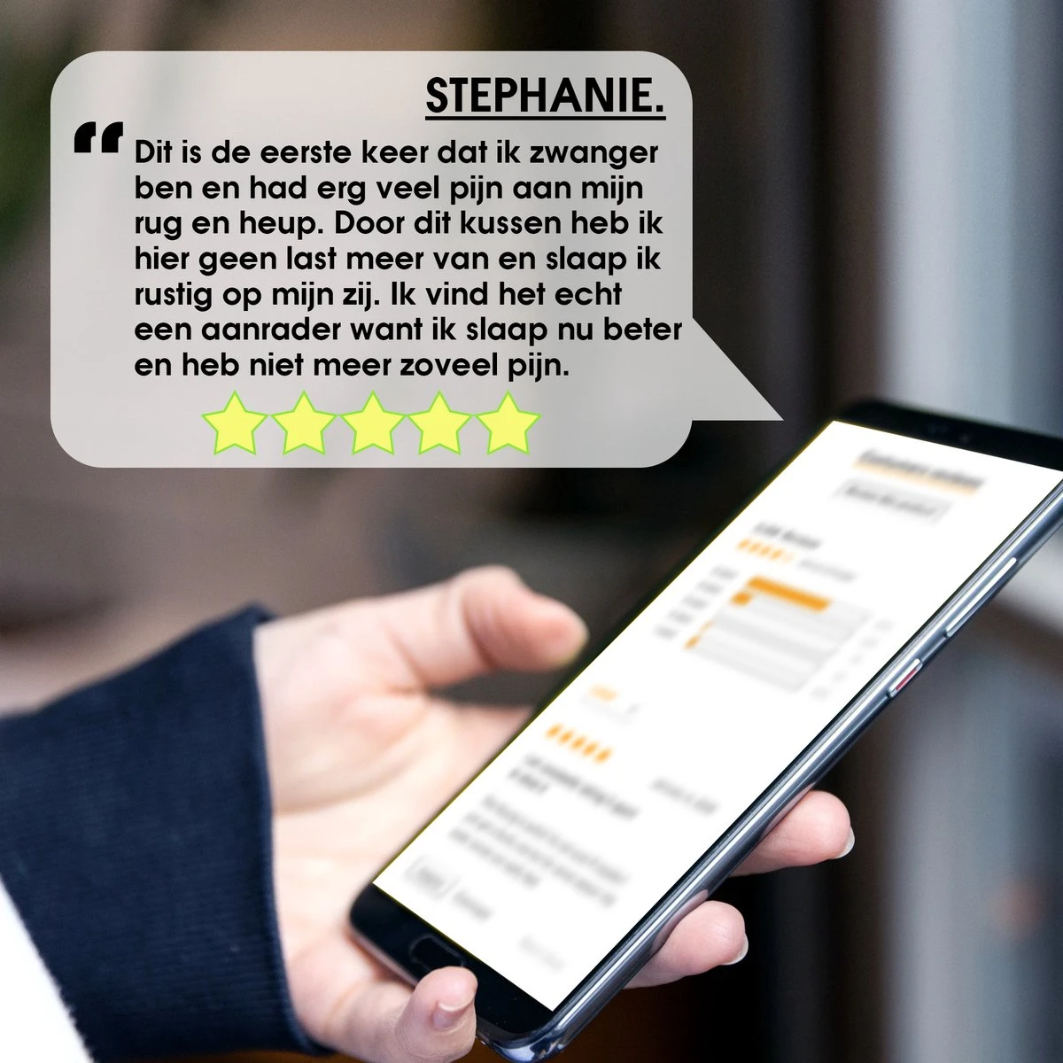 - Goed voor de nachtrust – Een goede nachtrust is zeer belangrijk voor de gezondheid, zeker als je zwanger bent. Doordat dit zwangerschapskussen je tijdens het slapen de perfecte ondersteuning biedt slaap jij direct in de juiste houding, waardoor pijn in de nek, rug en knieën voorkomen kan worden.